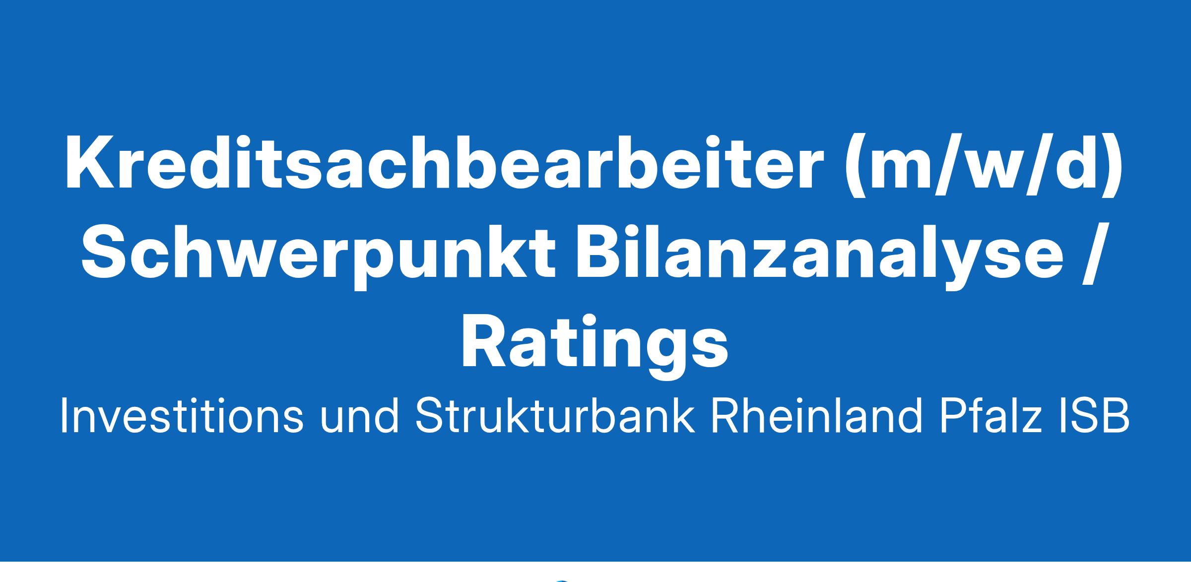 Zukunft. Fördern. Werte schaffen. Hierfür stehen wir als Förderbank des Landes Rheinland-Pfalz. Denn mit der Umsetzung der Förderprogramme von Bund, Land und unseren eigenen sorgen wir bei der Investitions- und Strukturbank Rheinland-Pfalz (ISB) dafür, bezahlbaren Wohnraum zu schaffen, die Wirtschaft zu stärken und eine stabile Infrastruktur sicherzustellen – für die Menschen, die Unternehmen und die Kommunen im Land. Zur Verstärkung unserer Organisationseinheit „Mietwohnungsbau“ suchen wir ab sofort in Voll- oder Teilzeit Kreditsachbearbeiter (m/w/d) Schwerpunkt Bilanzanalyse / Ratings Ihre Aufgaben Bearbeitung von förderrechtlichen Prüfungen und Bewilligungen von Eigendarlehen und Tilgungszuschüssen im Bereich des Mietwohnungsbaus Weiterbearbeitung bestehender Kredite und Verwaltung der zugehörigen Sicherheiten Überwachung von Krediten gemäß § 18 KWG, Durchführung von Immobilien- und Standardratings sowie Analyse von Bilanzen. Beratung unserer Kunden und Geschäftspartner, einschließlich Kreditinstitute, Kommunen und das Finanzministerium, persönlich, schriftlich und telefonisch Ermittlung des Werts von Deminimis-Beihilfen und Bearbeitung finanzmathematischer Anwendungen Mitwirkung in Projekten und Übernahme von Sonderaufgaben Ihr Profil Abgeschlossene Ausbildung zur Bankkauffrau / zum Bankkaufmann oder abgeschlossenes wirtschaftswissenschaftliches Studium Mehrjährige Berufserfahrung im Immobilien-Kreditgeschäft ist von Vorteil Kenntnisse in der Bilanzanalyse und im Bereich Immobilienrating Erfahrung in der Anwendung finanzmathematischer Tools, beispielsweise zur Berechnung von Eigenkapitalrenditen Wünschenswert sind SAP-Kenntnisse sowie fundierte Fähigkeiten im Umgang mit MS Office-Produkten Strukturierte, selbstständige Arbeitsweise sowie hohe Flexibilität Ihre Vorteile Sicherer Arbeitsplatz in der Förderbank des Landes Rheinland-Pfalz Feste Anstellung in Vollzeit 39 Stunden oder individueller Teilzeit Flexible Gestaltung der Arbeitszeit von 6 bis 20 Uhr ohne Kernzeiten Mobiles Arbeiten nach einer Einarbeitungszeit 30 Tage Urlaub (+ Heiligabend/Silvester + 2 arbeitsfreie Tage an Fastnacht) Zuschuss zum Deutschlandticket oder vergünstigte Parkmöglichkeit im Parkhaus Freundliche und hilfsbereite Kolleginnen und Kollegen Individuelle Fort- und Weiterbildungsmöglichkeiten Tarifliche Altersversorgung und vermögenswirksame Leistungen Kinderbetreuung im Notfall und in den Ferien Wir freuen uns, Sie kennenzulernen! Bewerben Sie sich unter Angabe des Stichwortes „Kreditsachbearbeiter (m/w/d) Schwerpunkt Bilanzanalyse / Ratings“, Ihres möglichen Eintrittstermins und Ihrer Gehaltsvorstellung über das Bewerbungsformular unter www.isb.rlp.de/jobs. Haben Sie vorab Fragen zur Stelle, dann rufen Sie einfach Herrn Reichert (Personal, 06131 6172 1431, carl.reichert@isb.rlp.de) oder Frau Frey (Fachbereich, 06131 6172 1711, andrea.frey@isb.rlp.de) an. Chancengleichheit und Vielfalt sind für uns wichtig und selbstverständlich. Deshalb freuen wir uns über jede Bewerbung, denn für uns zählen Kompetenz und Persönlichkeit. Schwerbehinderte Menschen werden bei gleicher Eignung bevorzugt berücksichtigt.