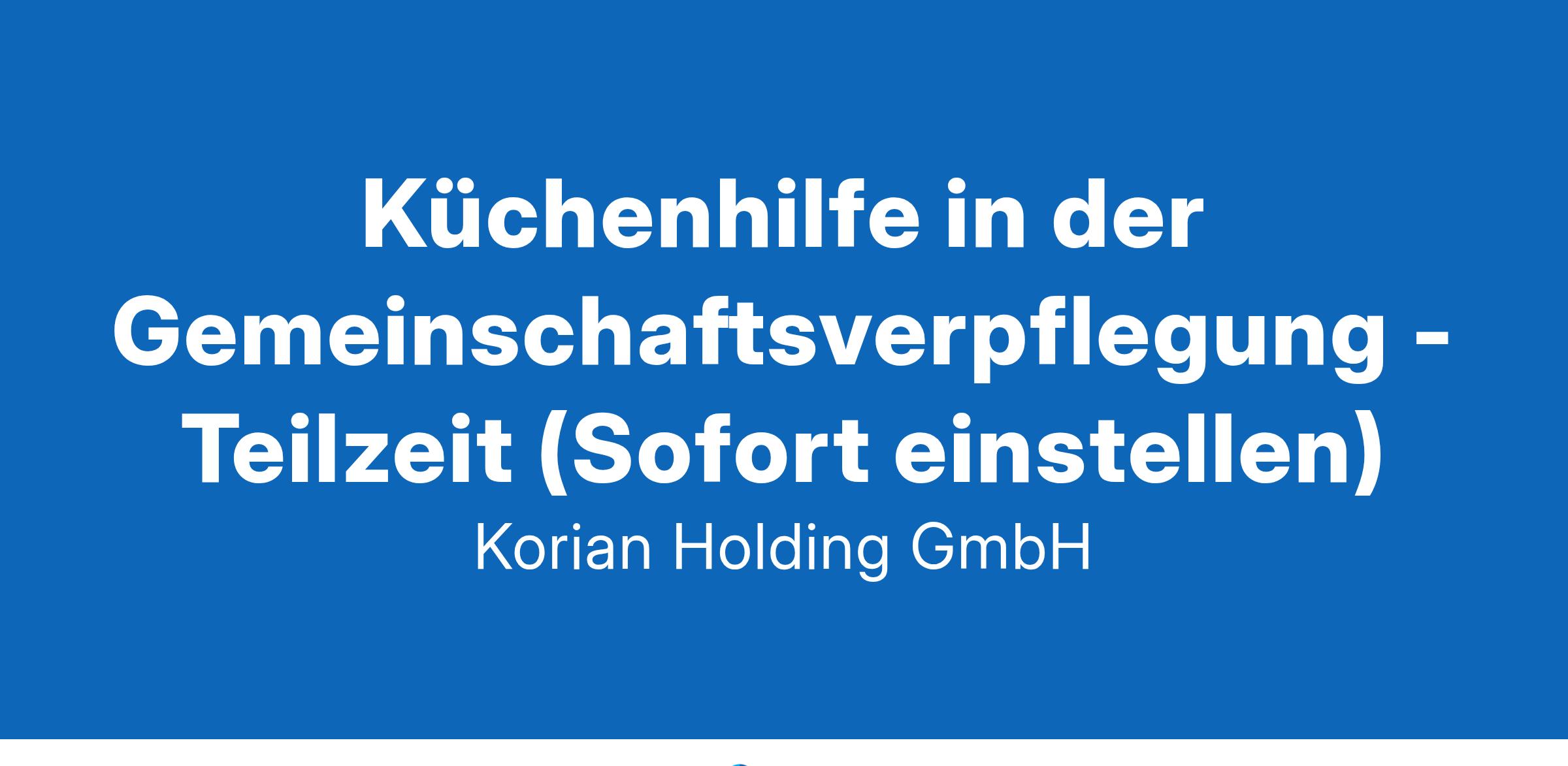 Küchenhilfe in der Gemeinschaftsverpflegung - Teilzeit (Sofort einstellen)