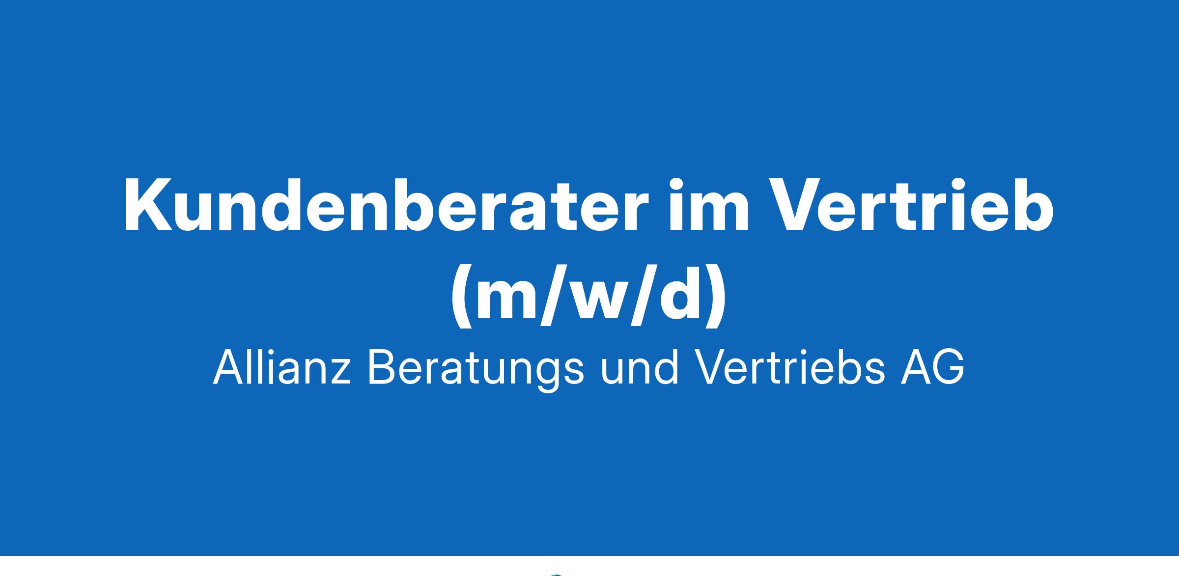 ALLIANZ BERATUNGS- UND VERTRIEBS-AG Kundenberater im Vertrieb (m/w/d) - auch als Quereinstieg möglich Deine Vorteile im Vertrieb der Allianz Kontinuierliche Unterstützung: Profitiere von Schulungen und Coachings durch erfahrene Mitarbeiter:innen, Trainer:innen und Führungskräfte, um fachlich und persönlich zu wachsen. Flexible Arbeitsmöglichkeiten: Nutze unsere digitalen Beratungstools, um von überall aus zu arbeiten und Deine Kundinnen und Kunden bestmöglich zu betreuen. Attraktives Vergütungsmodell: Gestalte Dein Einkommen selbst – durch Fleiß und Engagement kannst Du über Dein Festgehalt hinaus Provisionen und leistungsbezogene Sondervergütungen verdienen. Karriereturbo Vertrieb: Deine engagierte Arbeit kann schnell zu beruflichem Fortschritt führen. Darum geht es Als Kundenberater:in im Vertrieb der Allianz trägst Du aktiv dazu bei, die Existenzen von Familien und Unternehmer:innen abzusichern. Mit passgenauen Versicherungslösungen hilfst Du dabei, Menschen in verschiedensten Lebenssituationen zu schützen. Dabei bist Du eine:r unserer Lebensbegleiter:innen, die sicherstellen, dass unsere Kundinnen und Kunden nach Vertragsabschluss die richtige Absicherung haben. Auch über den Vertragsabschluss hinaus stehst Du im Schaden- oder Leistungsfall vertrauensvoll an der Seite Deiner Kunden und Kundinnen. Dein Einsatz ermöglicht es Menschen, ihre finanzielle Zukunft zu planen und sich vor unvorhersehbaren Risiken zu schützen. Das bringst Du mit Abgeschlossene Berufsausbildung zum:r Kaufmann:frau für Versicherungen und Finanzanlagen, Fachmann:frau für Versicherungsvermittlung oder eine vergleichbare Qualifikation