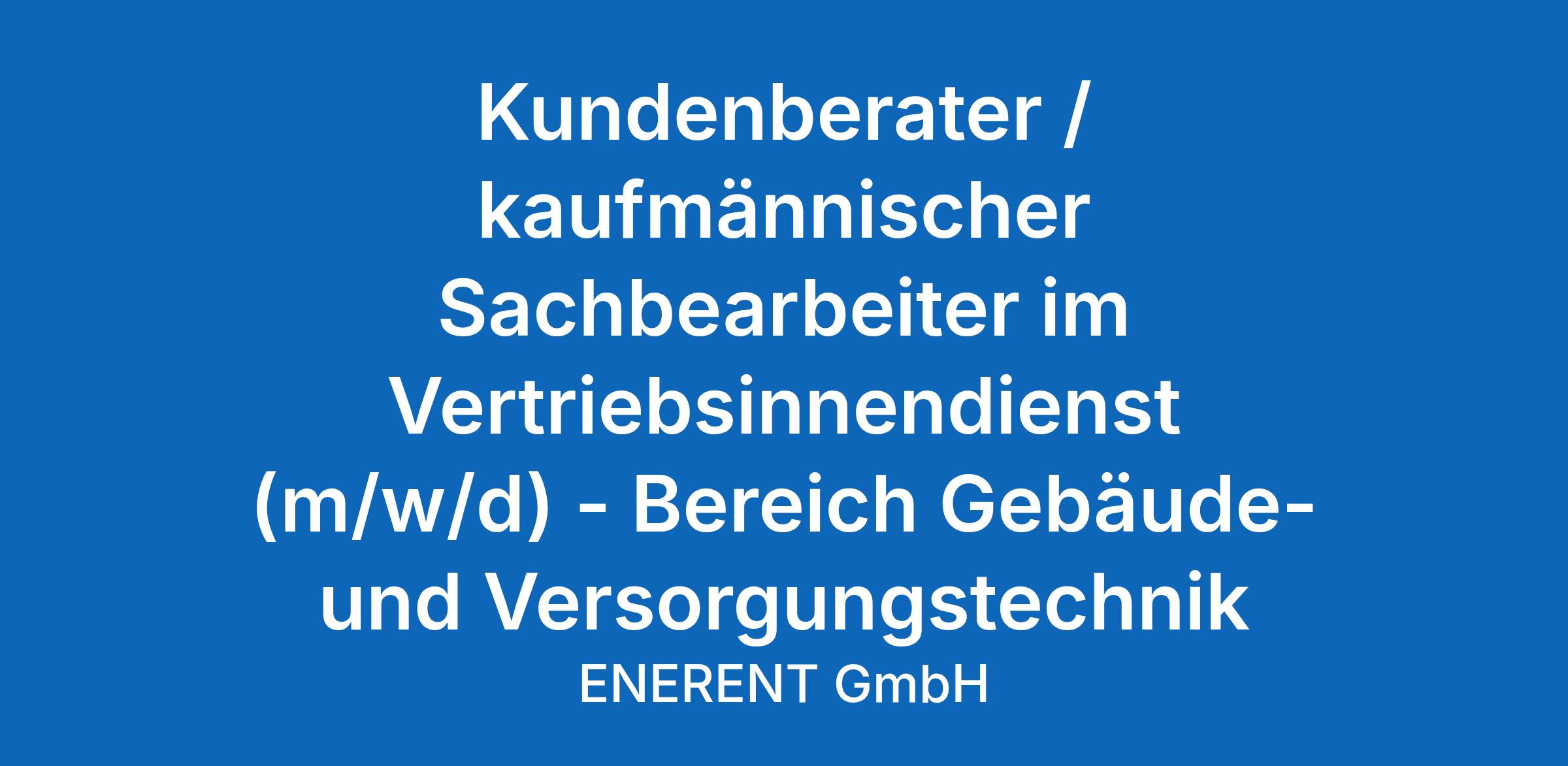 Kundenberater / Kaufmännischen Sachbearbeiter (m/w/d) im Vertriebsinnendienst – Bereich Gebäude- und Versorgungstechnik