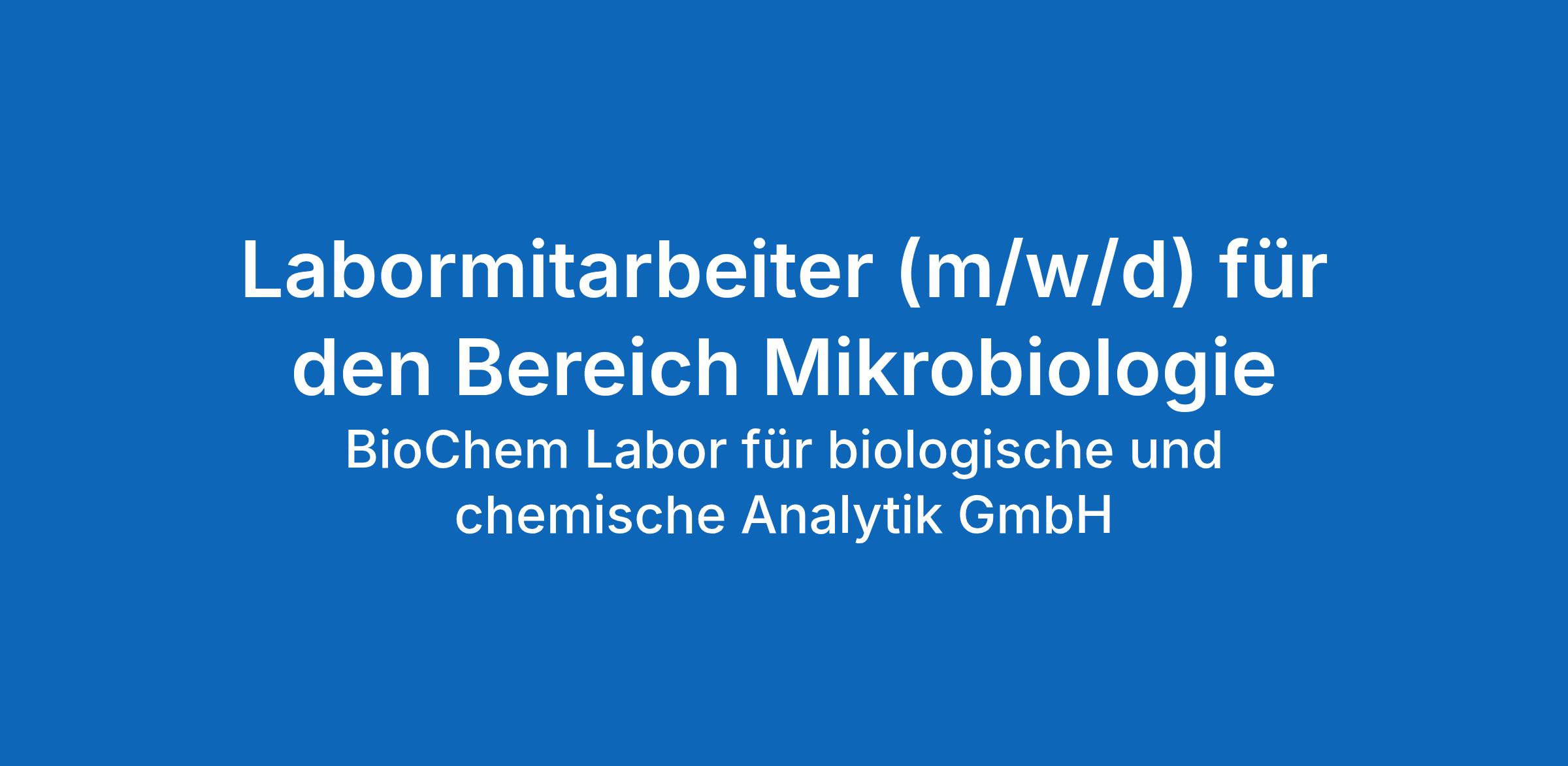 Labormitarbeiter (m/w/d) für den Bereich Mikrobiologie