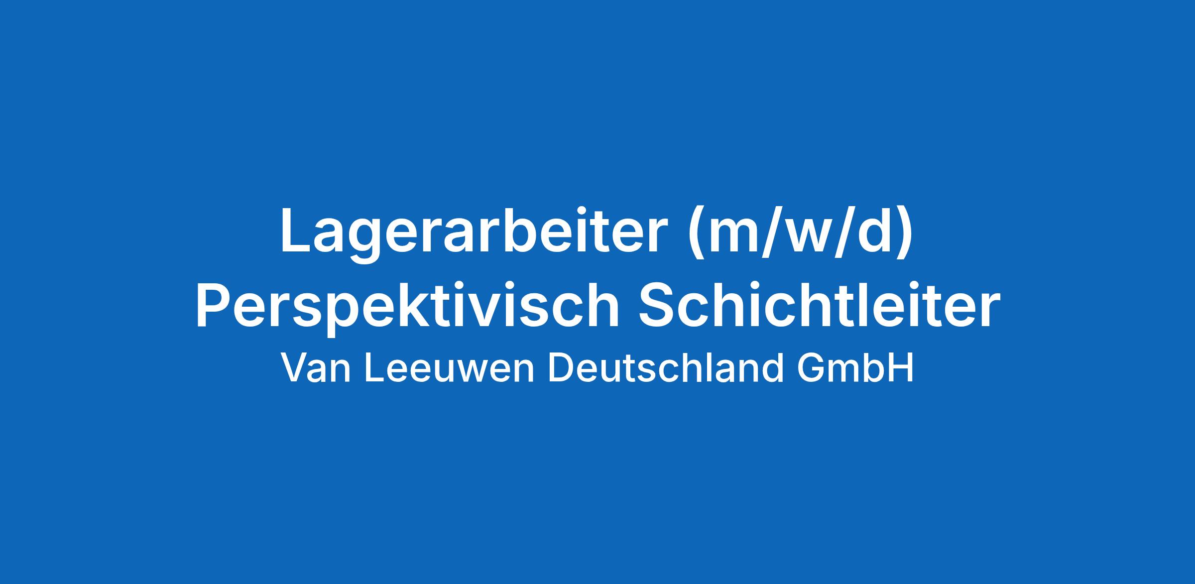 Wir freuen uns auf deine aussagekräftigen Bewerbungsunterlagen (Lebenslauf, Zeugnisse) unter Angabe deiner Gehaltsvorstellung und deines frühestmöglichen Eintrittstermins ausschließlich per E-Mail an bewerbung.vld@vanleeuwen.de.
