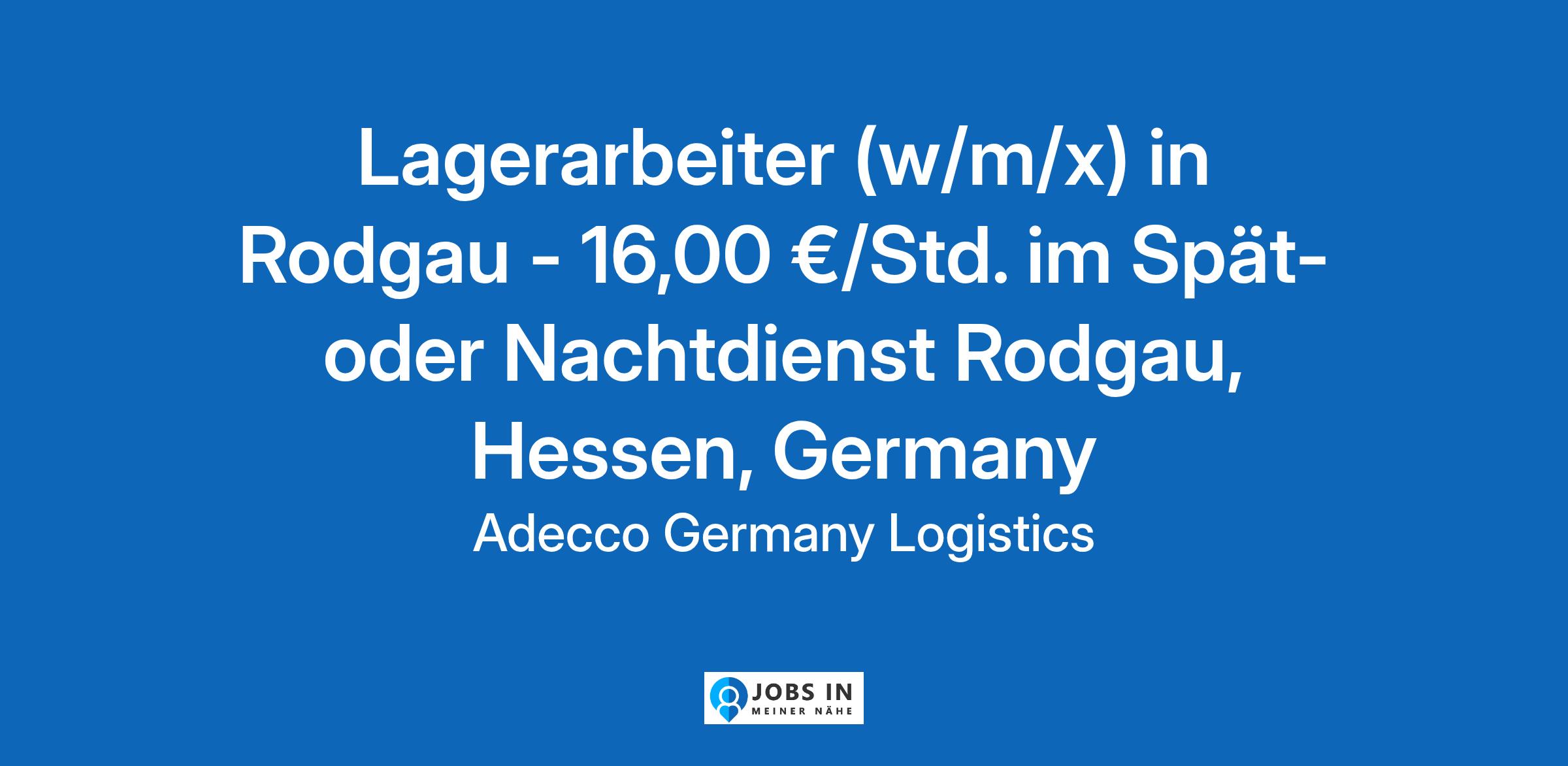 Lagerarbeiter (w/m/x) in Rodgau - 16,00 €/Std. im SpΓ€t- oder Nachtdienst Rodgau, Hessen, Germany