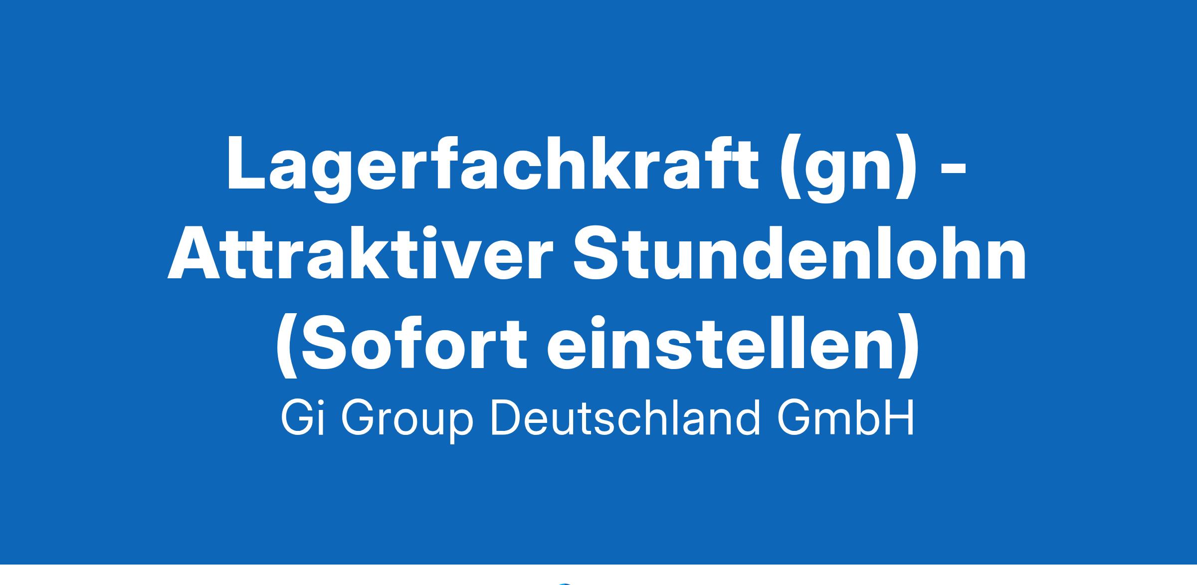 Mitarbeiter (gn) im Lager - 15,23 € Stundenlohn ab sofort in Vollzeit in Waldbronn Die Gi Group ist ein international agierender Personaldienstleister mit mehr als 500 Standorten in 40 Ländern. Deine Aufgaben als Mitarbeiter im Lager Warenkontrolle  Ein- und Auslagerungen der Waren Kommissionieren und Verpacken der Waren Warenein- und Warenausgang Dein Profil  Erste Berufserfahrung im Lager wünschenswert  Flexibel einsetzbar bei unserem Kunden  Teamfähig- und Zuverlässigkeit Deutschkenntnisse in Wort und Schrift Unser Angebot Attraktive Vergütung Einen langfristigen Einsatz in einem unserer top Kundenunternehmen Nahegelegene Parkplätze vorhanden Gute Erreichbarkeit mit dem PKW Vielfältige Entwicklungsmöglichkeiten mit dem Netzwerk eines internationalen Unternehmens Deine Bewerbung Für Deine Bewerbung als Mitarbeiter im Lager klicke bitte einfach auf „Jetzt bewerben“. Dort kannst Du Deine Kontaktdaten eingeben sowie Deinen Lebenslauf und Deine Bewerbungsunterlagen hochladen. Du benötigst dafür nur ca. 1 Minute. Dein zuständiger Personaldisponent wird sich bei Dir schnellstmöglich melden. Gerne kannst Du uns auch Deine Bewerbungsunterlagen per E-Mail zusenden. Wir freuen uns auf Deine Bewerbung! Unsere Stellenangebote richten sich an Arbeitssuchende jeglichen Geschlechts. (gn) = geschlechtsneutral. Kontakt Gi Group Recruiting Team