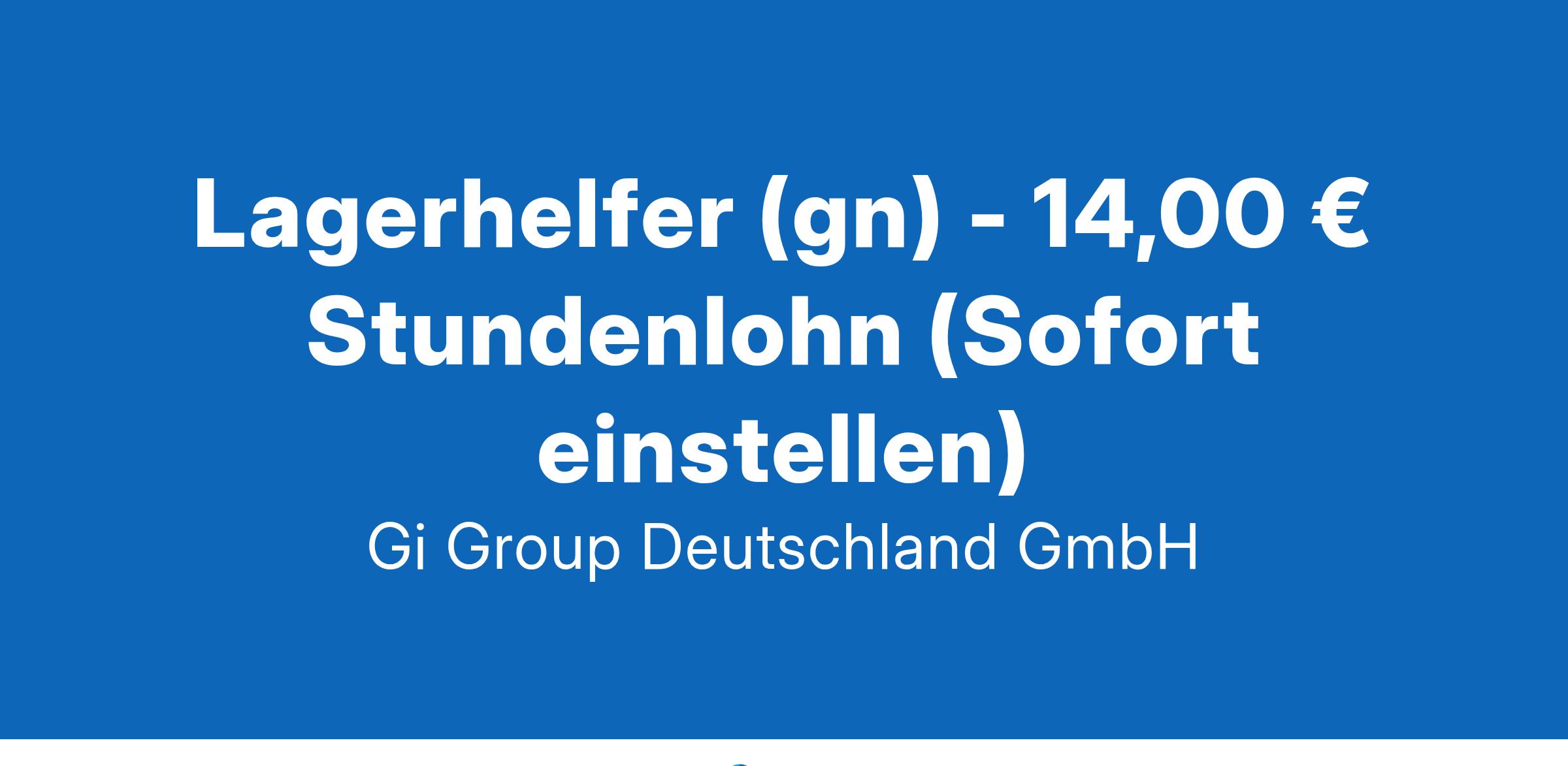 Lagerhelfer (gn) - 14,00 € Stundenlohn ab sofort in Vollzeit in Zülpich Die Gi Group ist ein international agierender Personaldienstleister mit mehr als 500 Standorten in 40 Ländern. Deine Aufgaben Du unterstützt bei der Entladung ankommender LKW Des Weiteren sorgst Du für eine korrekte Einlagerung angelieferter Waren Pakete werden von Dir auf mögliche Beschädigungen geprüft Du unterstützt bei der Kommissionierung und dem Verpacken Dein Profil Bestenfalls besitzt Du einen gültigen Staplerschein Idealerweise konntest Du schon erste Erfahrung als Lagerhelfer sammeln Schichtarbeit in einem 2-Schichtsystem bereitet Dir Freude Für die tägliche Kommunikation verfügst Du über gute Deutschkenntnisse Unser Angebot Wir bieten Dir eine übertarilfiche Bezahlung von 14,00 € die Stunde an Als Lagerhelfer erwartet Dich ein langfristiger Einsatz Es gibt weitere Prämien und Sonderzahlungen Eine spätere Übernahme in eine Festanstellung beim Kunden ist bei Eignung möglich Deine Bewerbung Für Deine Bewerbung klicke bitte einfach auf „Jetzt bewerben“. Dort kannst Du Deine Kontaktdaten eingeben sowie Deinen Lebenslauf und Deine Bewerbungsunterlagen hochladen. Du benötigst dafür nur ca. 1 Minute. Dein zuständiger Personaldisponent wird sich bei Dir schnellstmöglich melden. Gerne kannst Du uns auch Deine Bewerbungsunterlagen per E-Mail zusenden. Wir freuen uns auf Deine Bewerbung! Unsere Stellenangebote richten sich an Arbeitssuchende jeglichen Geschlechts. (gn) = geschlechtsneutral. Kontakt Gi Group Recruiting Team Angelina Greiser 03044338250