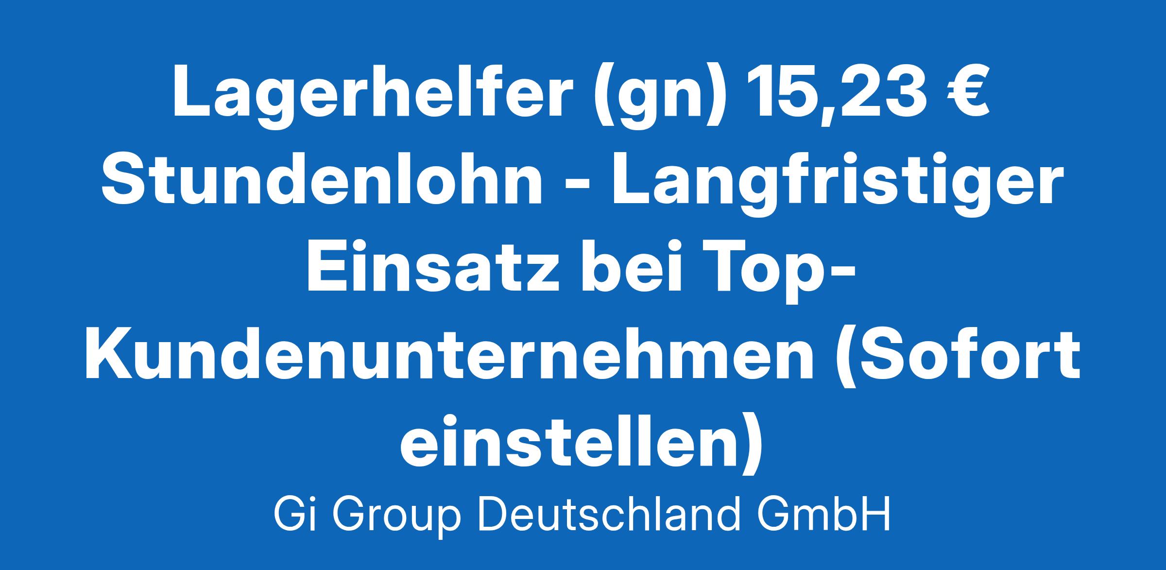 Lagerhelfer (gn) 15,23 € Stundenlohn ab sofort in Vollzeit nahe Karlsruhe Die Gi Group ist ein international agierender Personaldienstleister mit mehr als 500 Standorten in 40 Ländern. Deine Aufgaben als Lagerhelfer Warenein- und Ausgang Warenkontrolle Kommissionieren und Verpacken der Waren Ein- und Auslagerung Dein Profil Erste Berufserfahrung im Lager wünschenswert Flexibel einsetzbar bei unserem Kunden Teamfähig- und Zuverlässigkeit Deutschkenntnisse in Wort und Schrift Unser Angebot Attraktive Vergütung Einen langfristigen Einsatz in einem unserer top Kundenunternehmen Nahegelegene Parkplätze vorhanden Gute Erreichbarkeit mit dem PKW Vielfältige Entwicklungsmöglichkeiten mit dem Netzwerk eines internationalen Unternehmens Deine Bewerbung Für Deine Bewerbung als Lagerhelfer klicke bitte einfach auf „Jetzt bewerben“. Dort kannst Du Deine Kontaktdaten eingeben sowie Deinen Lebenslauf und Deine Bewerbungsunterlagen hochladen. Du benötigst dafür nur ca. 1 Minute. Dein zuständiger Personaldisponent wird sich bei Dir schnellstmöglich melden. Gerne kannst Du uns auch Deine Bewerbungsunterlagen per E-Mail zusenden. Wir freuen uns auf Deine Bewerbung! Unsere Stellenangebote richten sich an Arbeitssuchende jeglichen Geschlechts. (gn) = geschlechtsneutral. Kontakt Gi Group Recruiting Team