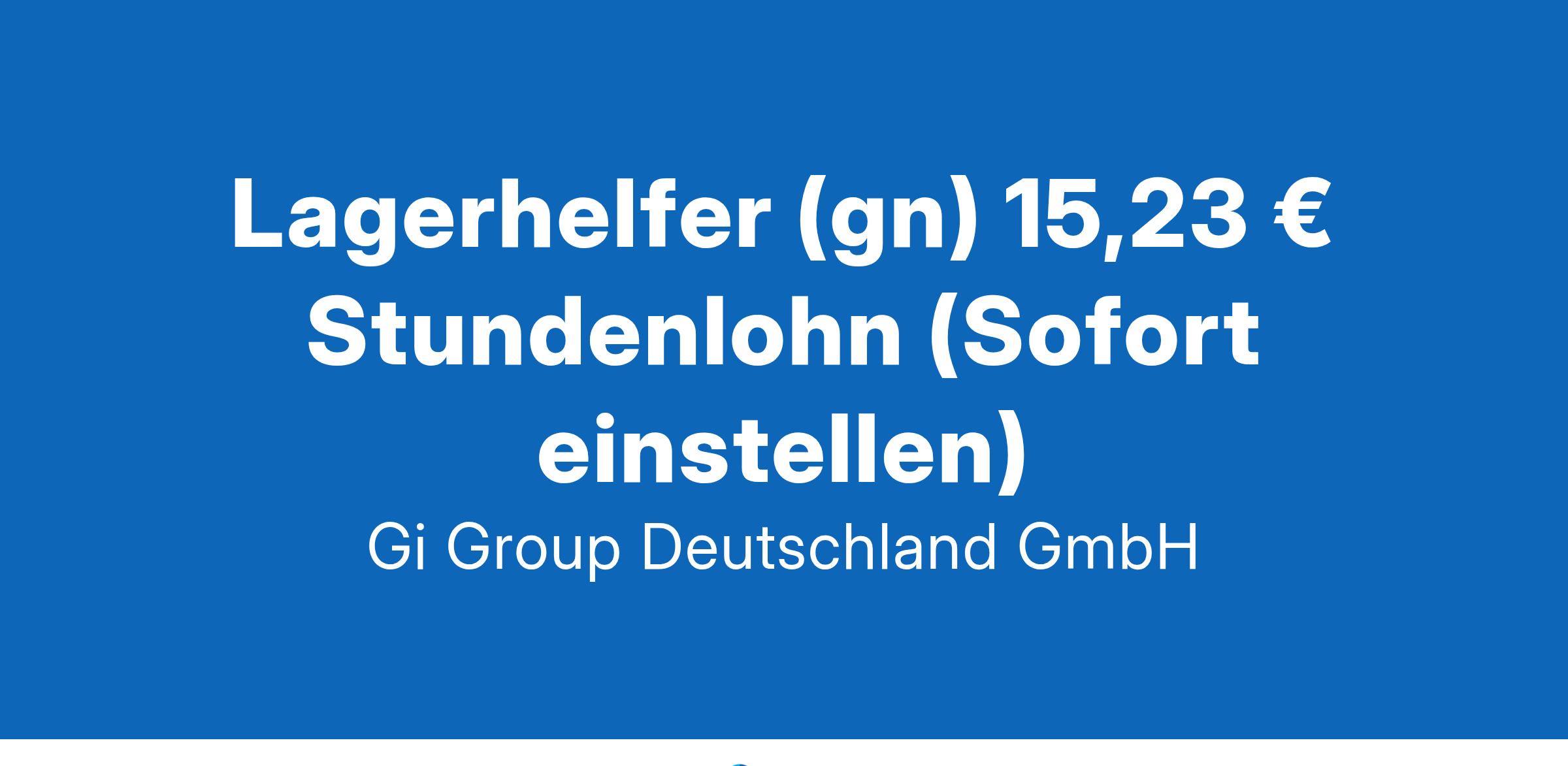 Lagerhelfer (gn) 15,23 € Stundenlohn (Sofort einstellen)