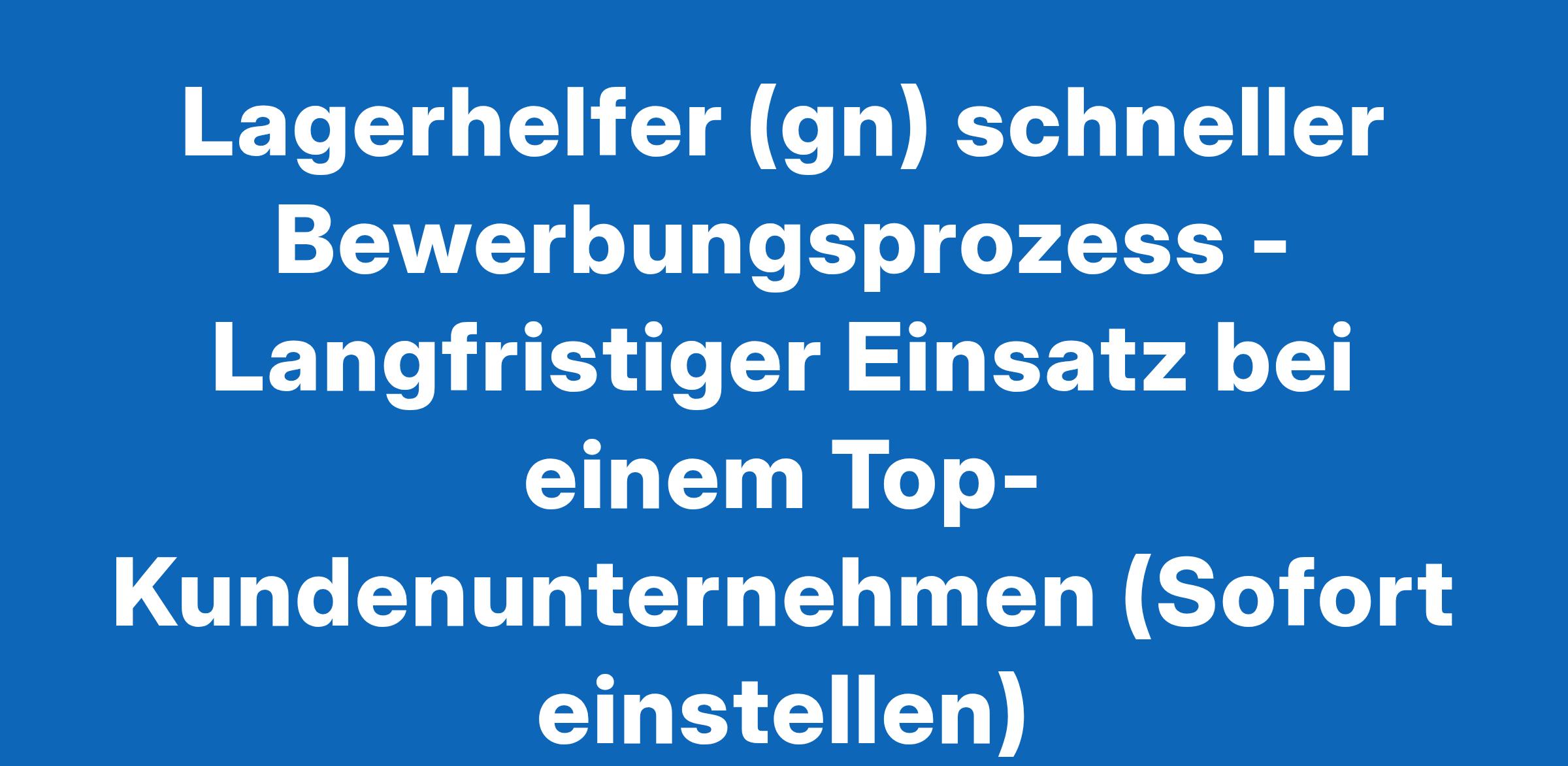 Lagerhelfer (gn) schneller Bewerbungsprozess - Langfristiger Einsatz bei einem Top-Kundenunternehmen (Sofort einstellen)