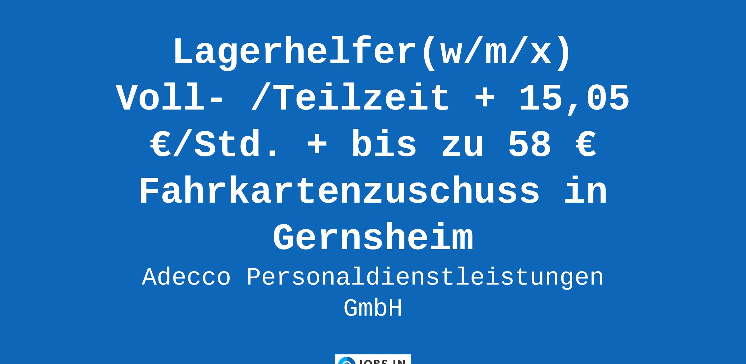 Lagerhelfer(w/m/x) Voll- /Teilzeit + 15,05 €/Std. + bis zu 58 € Fahrkartenzuschuss in Gernsheim