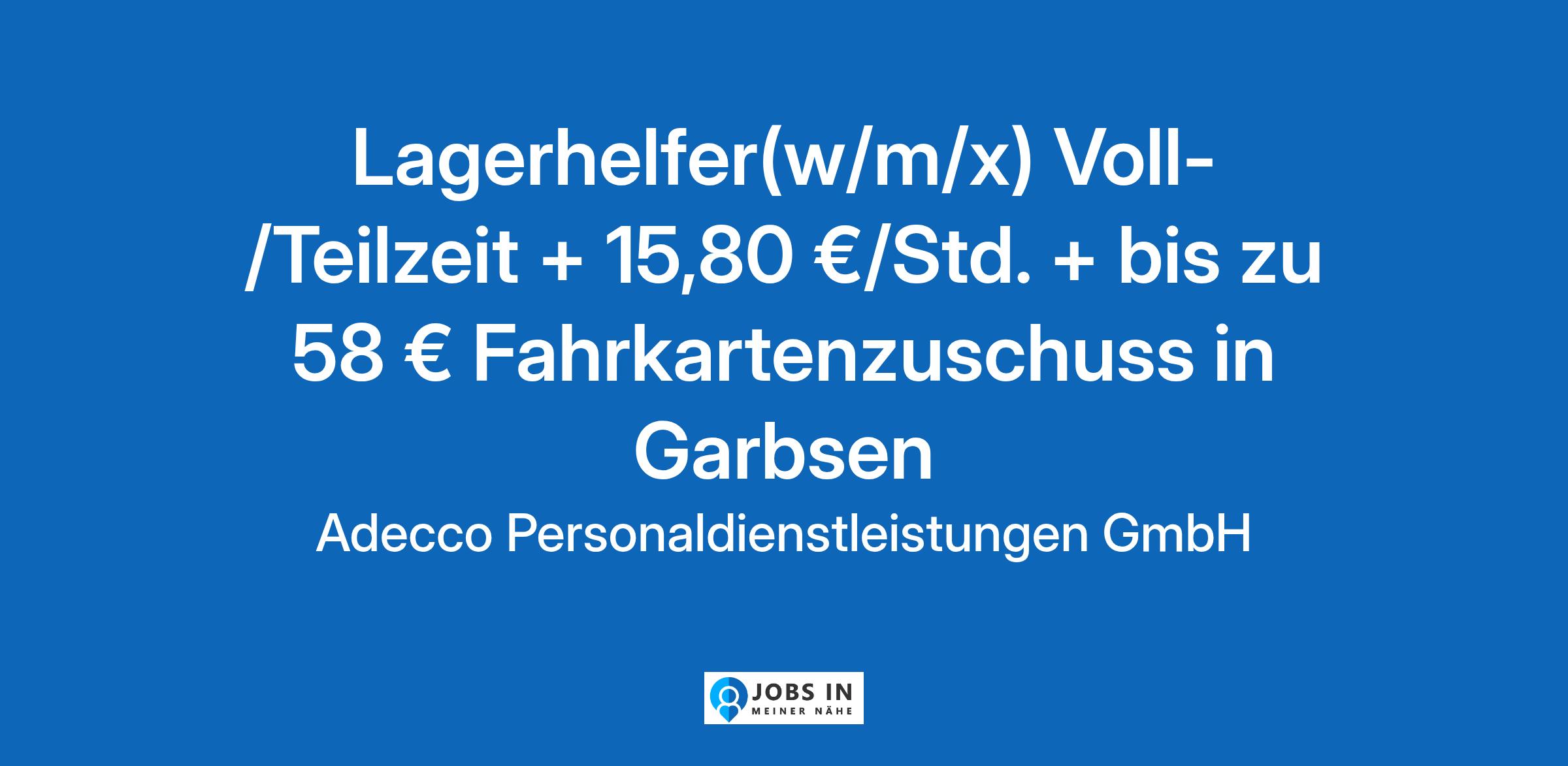 Lagerhelfer(w/m/x) Voll- /Teilzeit + 15,80 €/Std. + bis zu 58 € Fahrkartenzuschuss in Garbsen