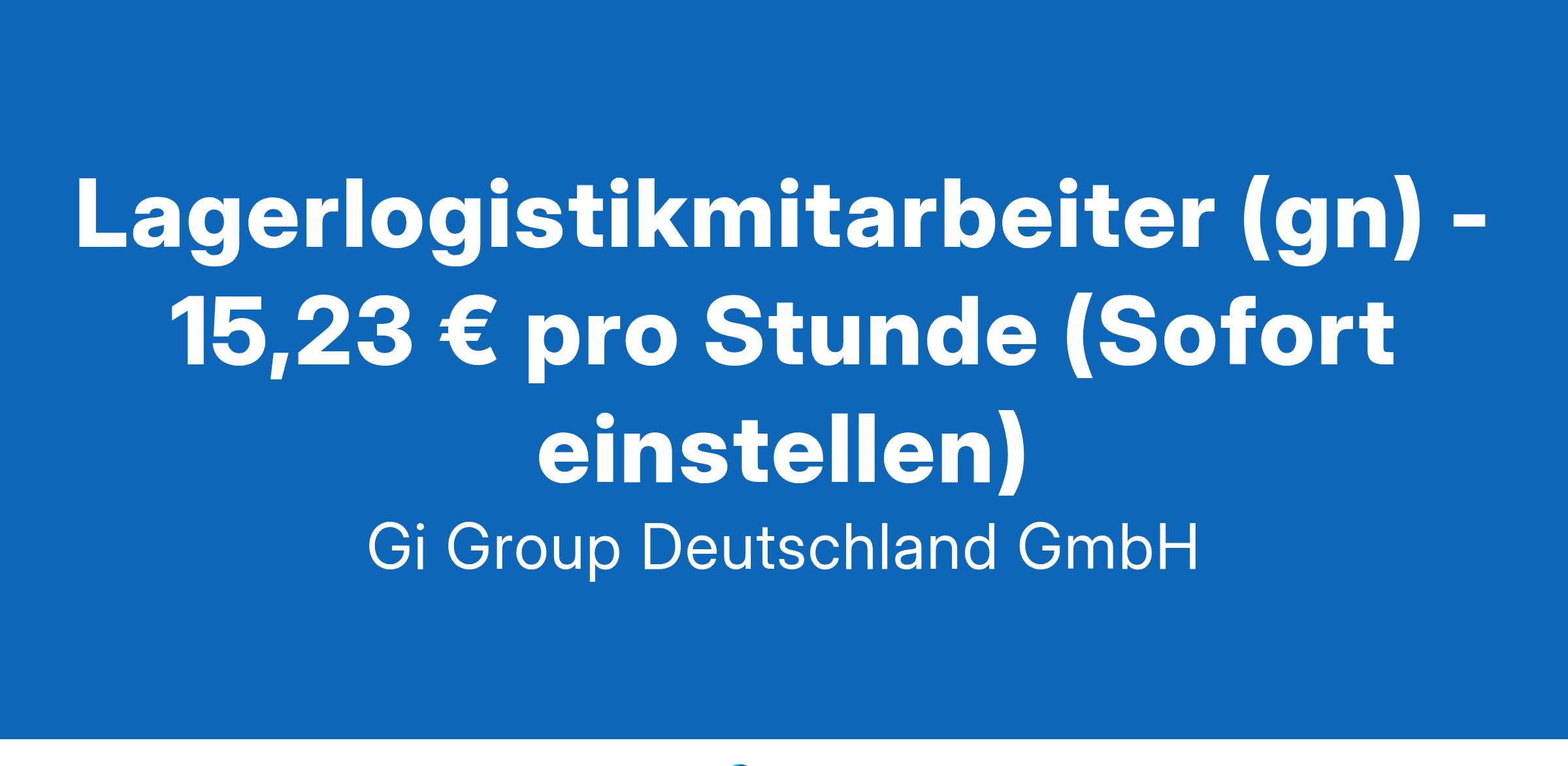 Lagerlogistikmitarbeiter (gn) - 15,23 € pro Stunde (Sofort einstellen)