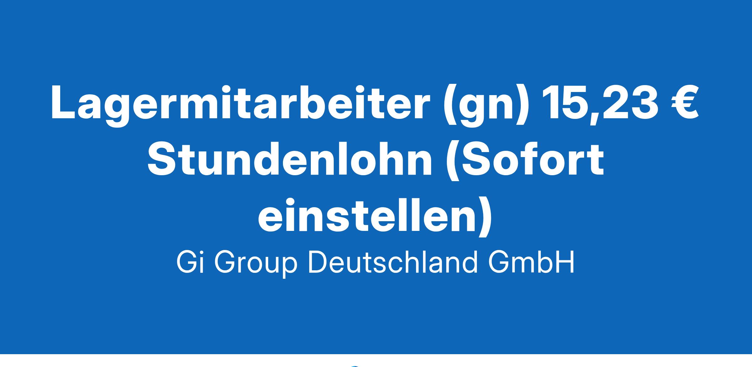 Lagermitarbeiter (gn) 15,23 € Stundenlohn ab sofort in Vollzeit nahe Karlsruhe Die Gi Group ist ein international agierender Personaldienstleister mit mehr als 500 Standorten in 40 Ländern. Deine Aufgaben als Lagermitarbeiter Unterstützung bei allen anfallenden administrativen Aufgaben in den Bereichen Logistikkoordination, Auftragsabwicklung, Pre-Sales, Post-Sales & Services und Prozesse In Zusammenarbeit mit Vertriebs- und/oder Servicevertretern sowie dem Logistikzentrum bist Du dafür verantwortlich, eine Vielzahl von Servicefunktionen vor und nach dem Verkauf sowie transportbezogene Angelegenheiten zu erledigen Unterstützung der internen Agilent Kunden, z. B. in den Bereichen Produktbestellungsabwicklung, Kundendienstanfragen, Produktänderungen oder Rücksendungen Dein Profil Eine abgeschlossene, kaufmännische Ausbildung Fließende Deutsch- sowie verhandlungssichere Englischkenntnisse Idealerweise erste Erfahrungen im Kundenservice Sicherer Umgang mit dem PC und Erfahrung mit SAP ist wünschenswert Ein hohes Servicelevel, kundenorientiert sowie teamfähig Unser Angebot Attraktive Vergütung Einen langfristigen Einsatz in einem unserer top Kundenunternehmen Gute Erreichbarkeit mit dem PKW und nahegelegene Parkplätze vorhanden Zahlreiche Mitarbeitervorteile in Form von Corporate Benefits Vielfältige Entwicklungsmöglichkeiten mit dem Netzwerk eines internationalen Unternehmens Deine Bewerbung Für Deine Bewerbung als Lagermitarbeiter klicke bitte einfach auf „Jetzt bewerben“. Dort kannst Du Deine Kontaktdaten eingeben sowie Deinen Lebenslauf und Deine Bewerbungsunterlagen hochladen. Du benötigst dafür nur ca. 1 Minute. Dein zuständiger Personaldisponent wird sich bei Dir schnellstmöglich melden. Gerne kannst Du uns auch Deine Bewerbungsunterlagen per E-Mail zusenden. Wir freuen uns auf Deine Bewerbung! Unsere Stellenangebote richten sich an Arbeitssuchende jeglichen Geschlechts. (gn) = geschlechtsneutral. Kontakt Gi Group Recruiting Team