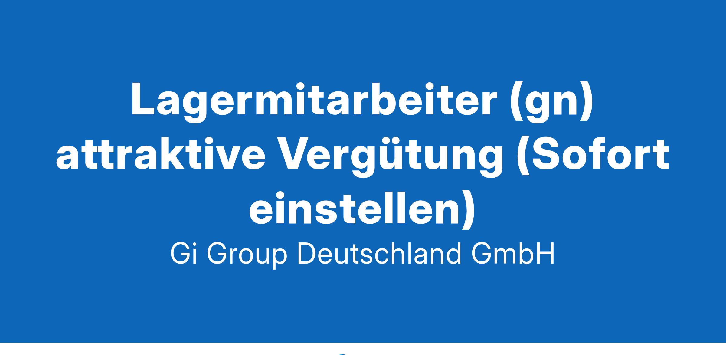 Lagermitarbeiter (gn) attraktive Vergütung ab sofort in Vollzeit in Waldbronn Die Gi Group ist ein international agierender Personaldienstleister mit mehr als 500 Standorten in 40 Ländern. Deine Aufgaben als Lagermitarbeiter Kommissionieren und Verpacken der Waren Warenkontrolle  Warenein- und Warenausgang  Einlagerungen und Auslagerungen Dein Profil  Erste Berufserfahrung im Lager von Vorteil Flexibel einsetzbar Teamfähig- und Zuverlässigkeit  Sehr gute Deutschkenntnisse  Unser Angebot Attraktive Vergütung ab 15,23 €/Std.steigend mit Betriebszugehörigkeit Einen langfristigen Einsatz in einem unserer top Kundenunternehmen  Nahegelegene Parkplätze vorhanden Vielfältige Entwicklungsmöglichkeiten mit dem Netzwerk eines internationales Unternehmens Deine Bewerbung Für Deine Bewerbung als Lagermitarbeiter klicke bitte einfach auf „Jetzt bewerben“. Dort kannst Du Deine Kontaktdaten eingeben sowie Deinen Lebenslauf und Deine Bewerbungsunterlagen hochladen. Du benötigst dafür nur ca. 1 Minute. Dein zuständiger Personaldisponent wird sich bei Dir schnellstmöglich melden. Gerne kannst Du uns auch Deine Bewerbungsunterlagen per E-Mail zusenden. Wir freuen uns auf Deine Bewerbung! Unsere Stellenangebote richten sich an Arbeitssuchende jeglichen Geschlechts. (gn) = geschlechtsneutral. Kontakt Gi Group Recruiting Team