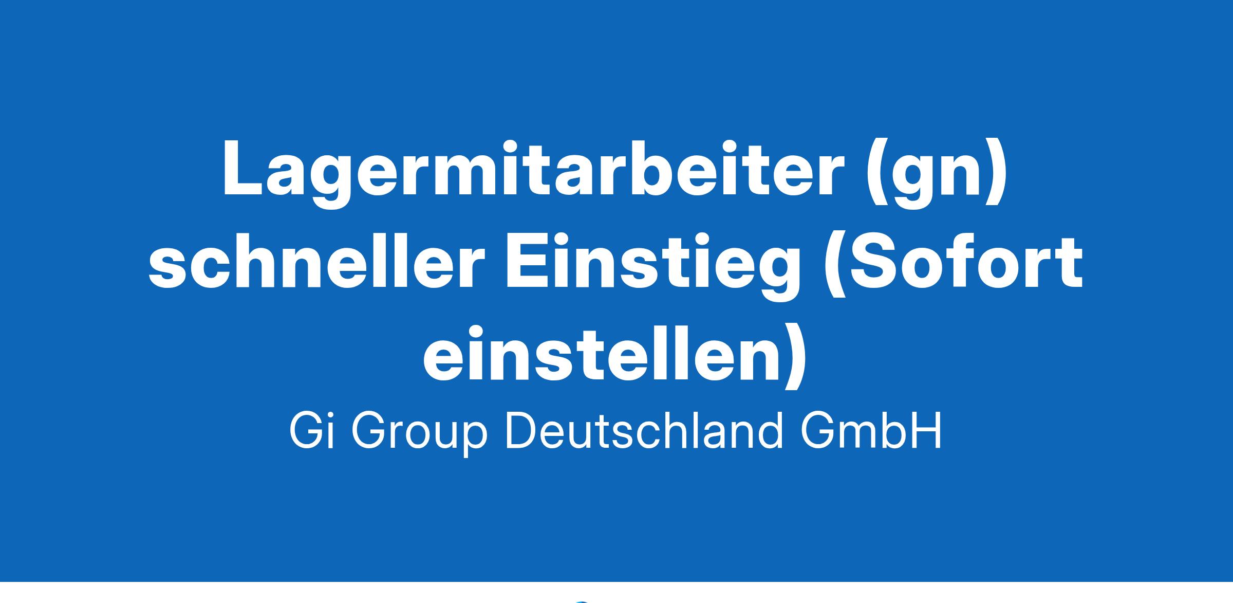 Lagermitarbeiter (gn) schneller Einstieg ab sofort in Vollzeit nahe Karlsruhe Die Gi Group ist ein international agierender Personaldienstleister mit mehr als 500 Standorten in 40 Ländern. Deine Aufgaben als Lagermitarbeiter Kommissionieren und Verpacken der Waren Warenkontrolle Warenein- und Warenausgang Einlagerungen und Auslagerungen Dein Profil als Lagermitarbeiter Erste Berufserfahrung im Lager von Vorteil Flexibel einsetzbar Teamfähig- und Zuverlässigkeit Sehr gute Deutschkenntnisse Unser Angebot Attraktive Vergütung ab 15,23 €/Std.steigend mit Betriebszugehörigkeit Gute Erreichbarkeit mit dem PKW und nahegelegene Parkplätze vorhanden Zahlreiche Mitarbeitervorteile in Form von Corporate Benefits Vielfältige Entwicklungsmöglichkeiten mit dem Netzwerk eines internationalen Unternehmens Deine Bewerbung Für Deine Bewerbung als Lagermitarbeiter klicke bitte einfach auf „Jetzt bewerben“. Dort kannst Du Deine Kontaktdaten eingeben sowie Deinen Lebenslauf und Deine Bewerbungsunterlagen hochladen. Du benötigst dafür nur ca. 1 Minute. Dein zuständiger Personaldisponent wird sich bei Dir schnellstmöglich melden. Gerne kannst Du uns auch Deine Bewerbungsunterlagen per E-Mail zusenden. Wir freuen uns auf Deine Bewerbung! Unsere Stellenangebote richten sich an Arbeitssuchende jeglichen Geschlechts. (gn) = geschlechtsneutral. Kontakt Gi Group Recruiting Team