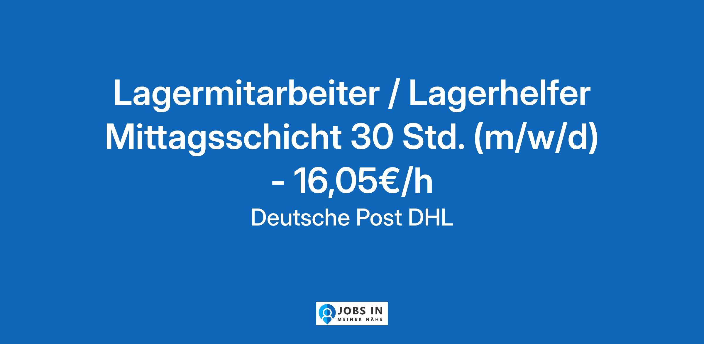 Lagermitarbeiter / Lagerhelfer Mittagsschicht 30 Std. (m/w/d) - 16,05€/h