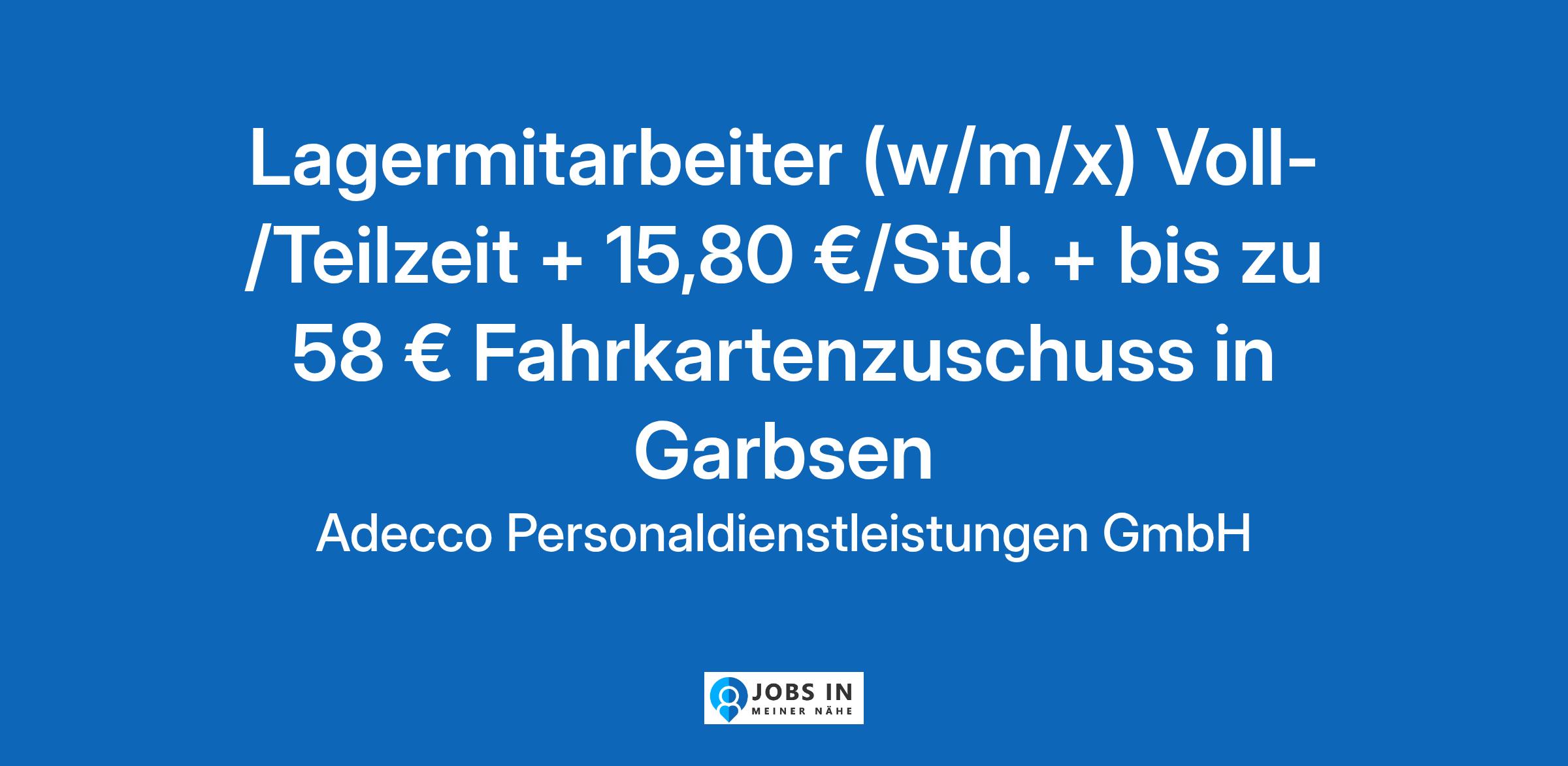Lagermitarbeiter (w/m/x) Voll- /Teilzeit + 15,80 €/Std. + bis zu 58 € Fahrkartenzuschuss in Garbsen