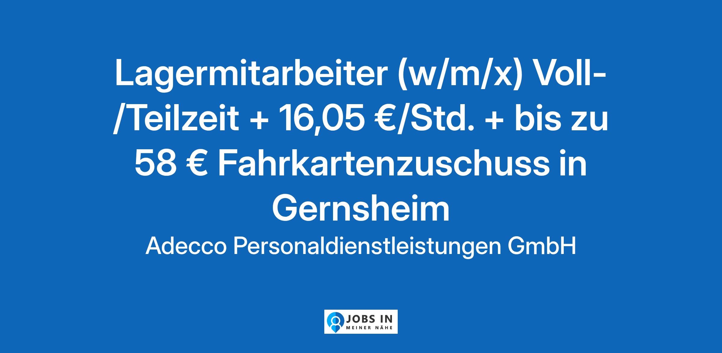 Lagermitarbeiter (w/m/x) Voll- /Teilzeit + 16,05 €/Std. + bis zu 58 € Fahrkartenzuschuss in Gernsheim
