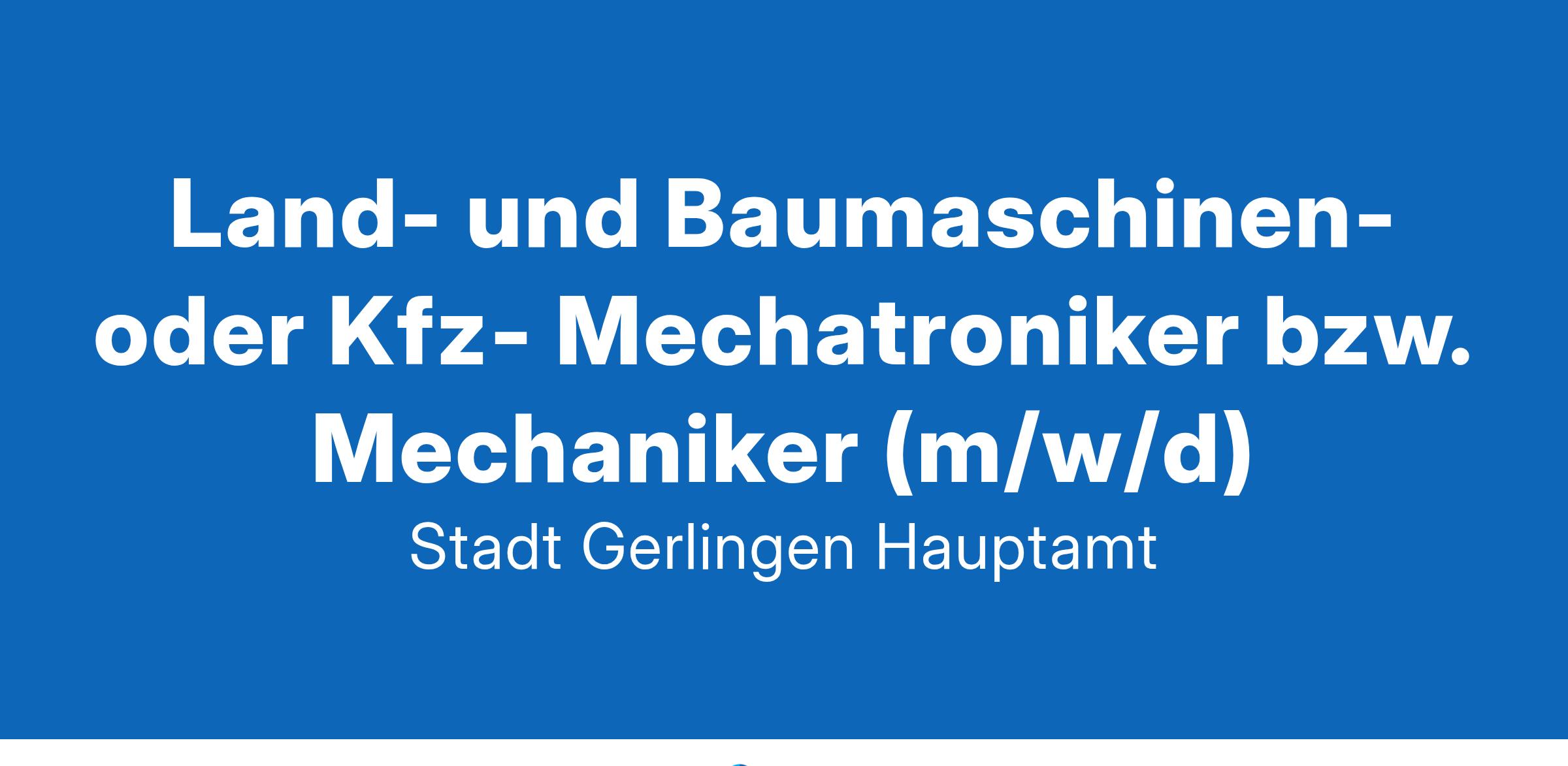 Die Stadt Gerlingen sucht zum frühestmöglichen Zeitpunkt für das Stadtbauamt, Abteilung Baubetriebshof, Fachbereich Straßenmanagement eine dynamische, innovative und motivierte Persönlichkeit alsLand- und Baumaschinen- oder Kfz- Mechatroniker bzw. Mechaniker (m/w/d)mit einem Umfang von 100 %.
