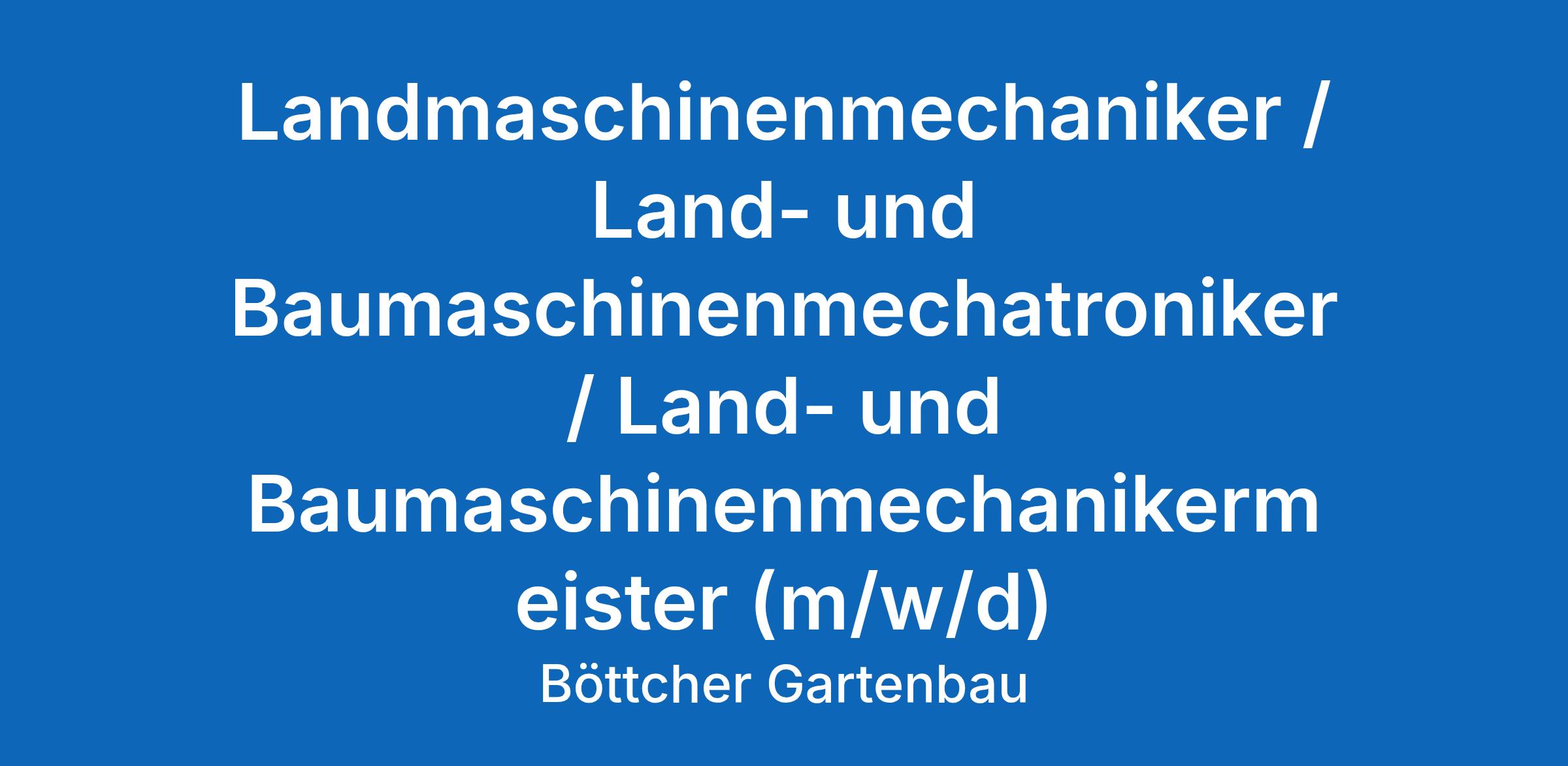 Landmaschinenmechaniker / Land- und Baumaschinenmechatroniker / Land- und Baumaschinenmechanikermeister (m/w/d)