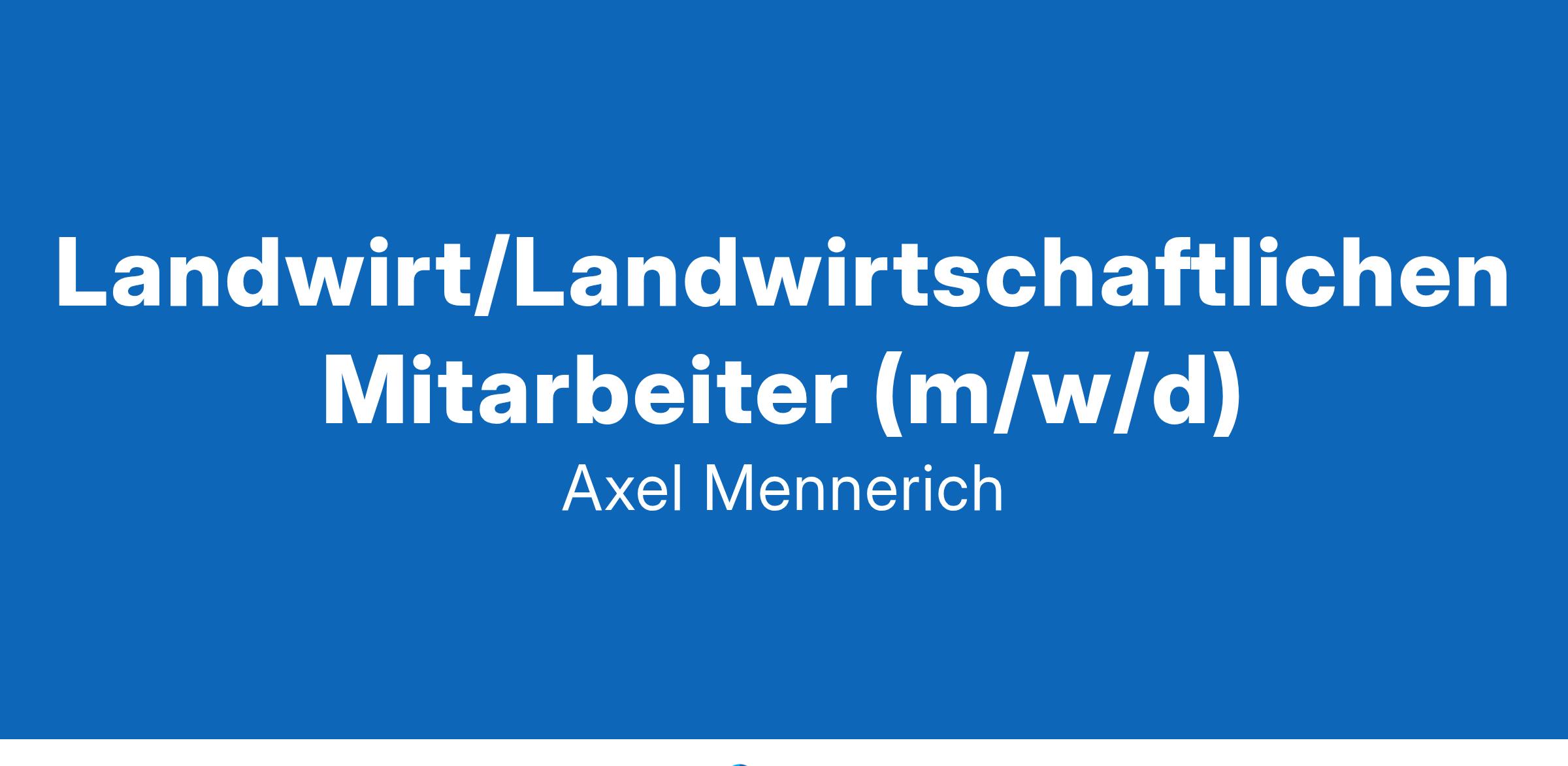 Ackerbaubetrieb sucht Landwirt/Landwirtschaftlichen Mitarbeiter (m/w/d) Wir bieten familiäres Umfeld, moderne Maschinen, große Flächenstrukturen, vielseitiges Tätigkeitsfeld sowie geregelte Arbeitszeiten. Axel Mennerich | Bankewitz | Tel. 0174-9256202 Original Anzeige