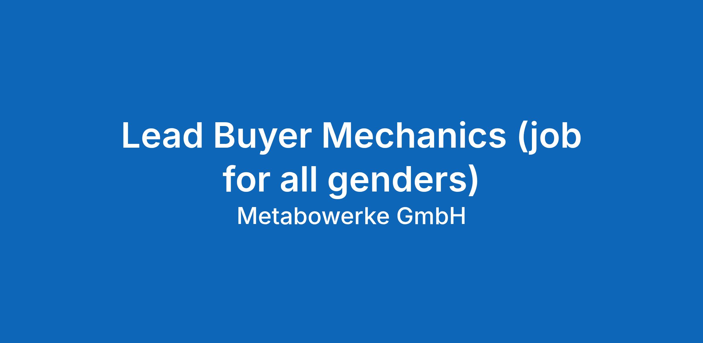 Lead Buyer Mechanics (job for all genders)
