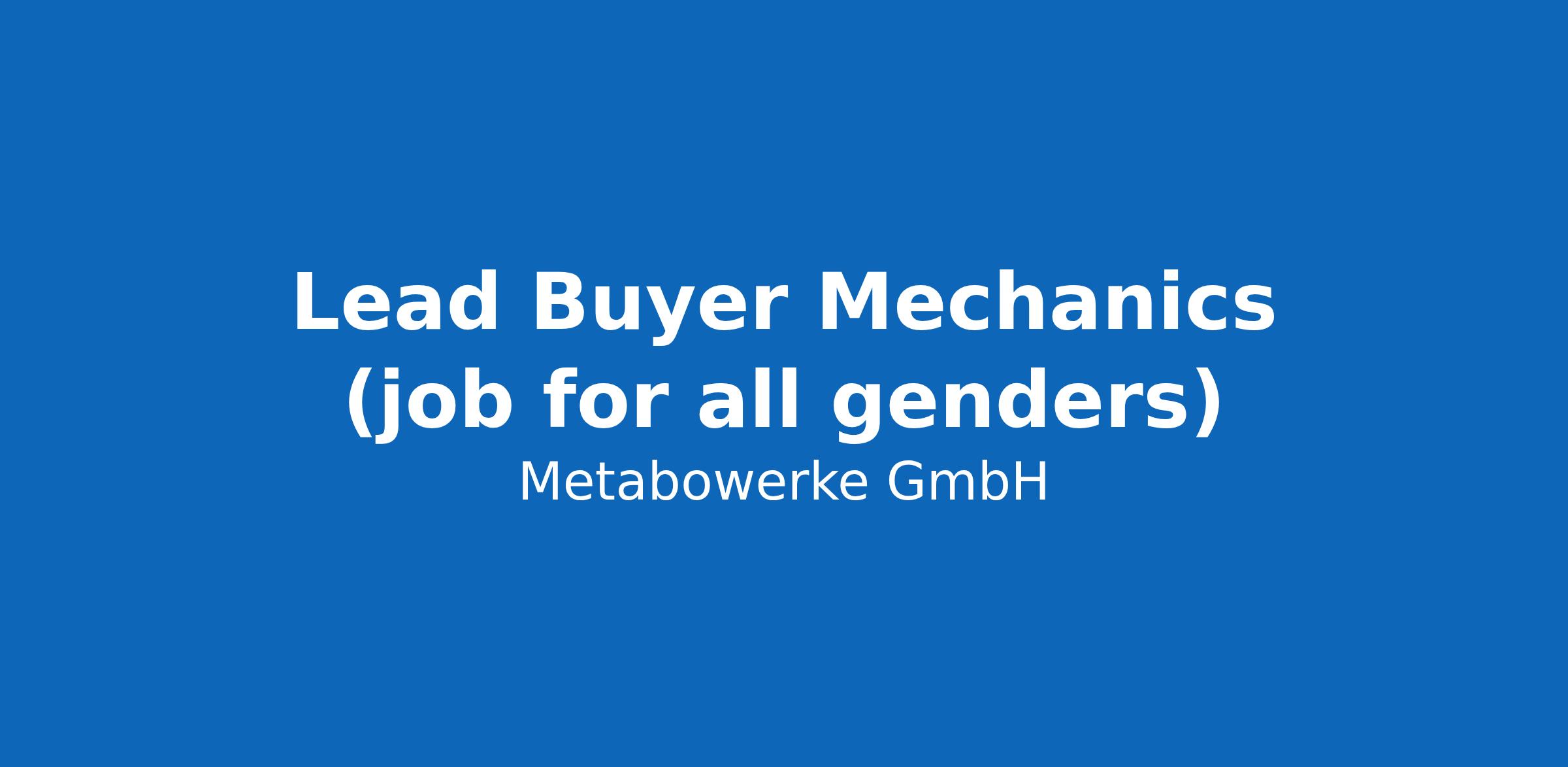 Lead Buyer Mechanics (job for all genders)