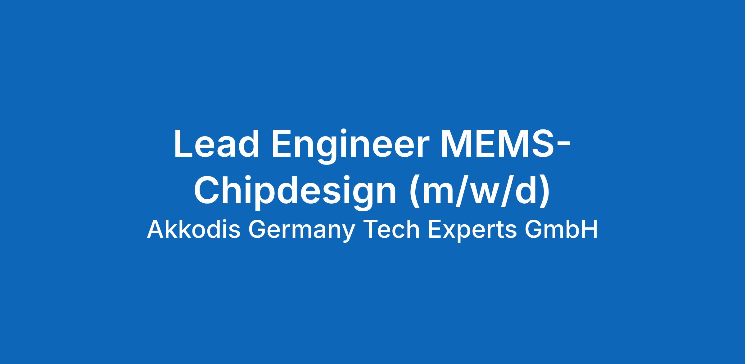 Lead Engineer MEMS-Chipdesign (m/w/d)