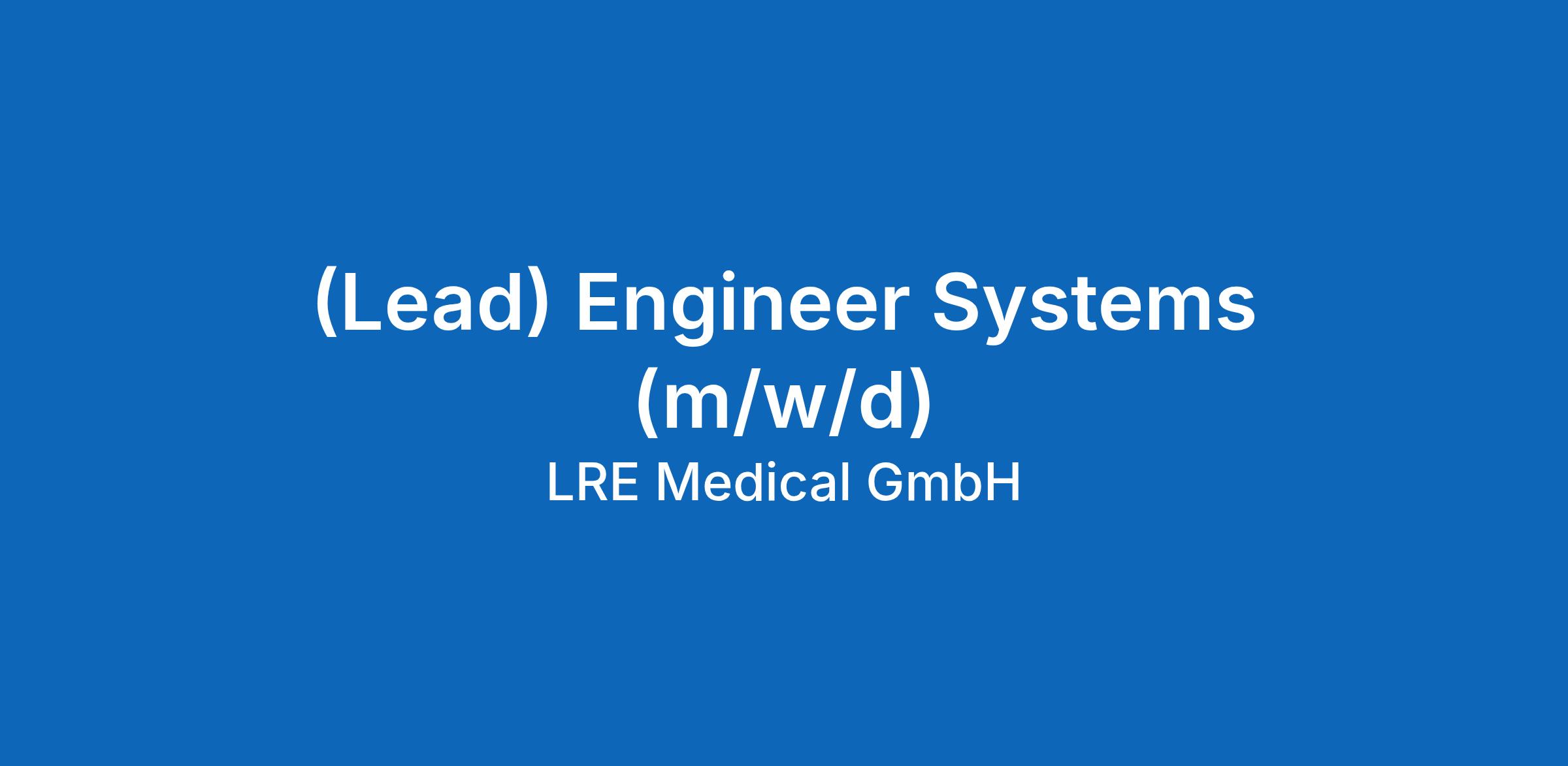(Lead) Engineer Systems (m/w/d)