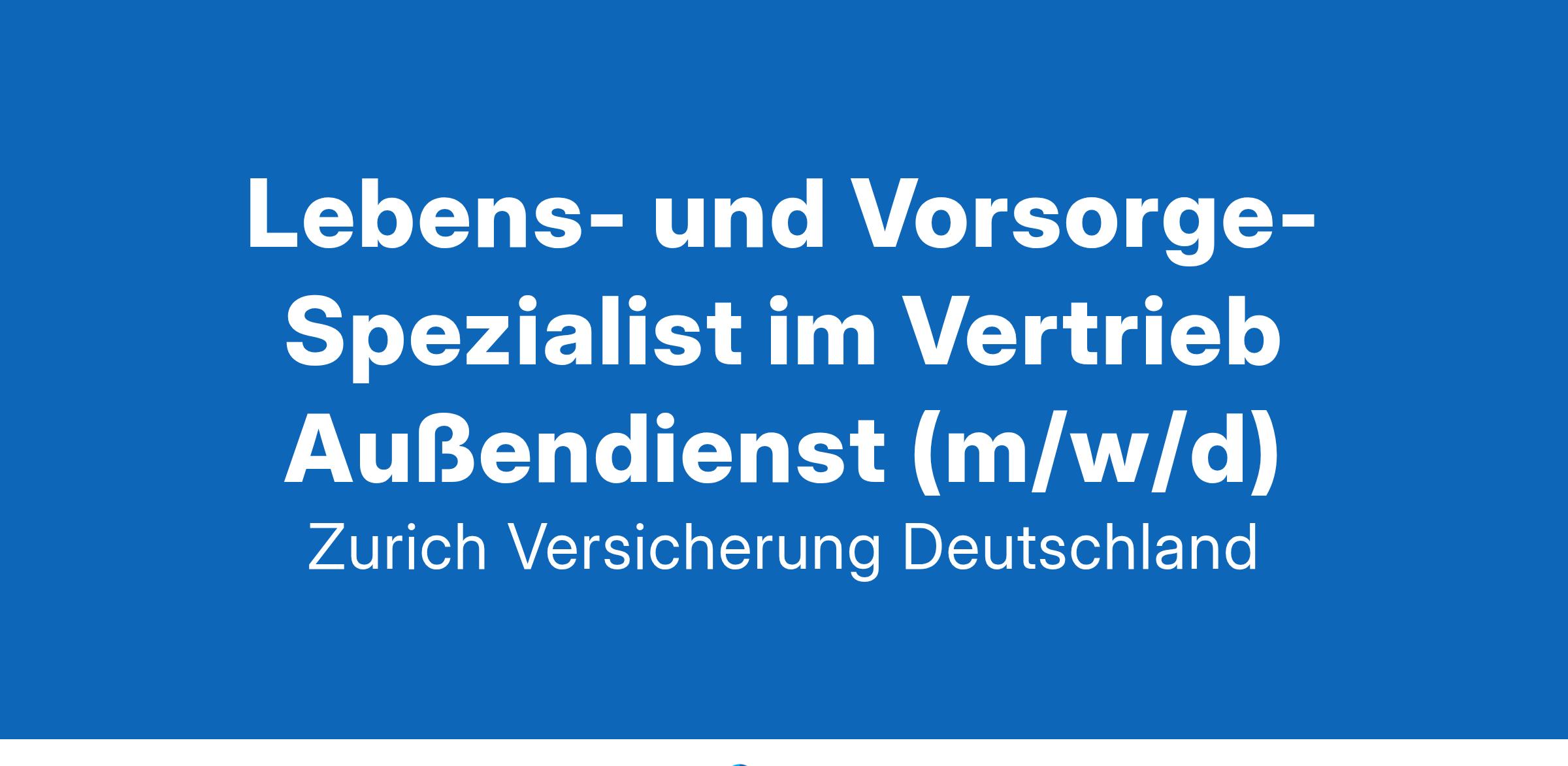 Bist du bereit, mit dem Besten zu rechnen? Bei Zurich leben wir Versicherung neu. Um die Wünsche unserer Kunden noch besser zu erfüllen, gehen wir neue Wege, denken kreativ, arbeiten agil. Unsere Unternehmenskultur schenkt dir in jeder Hinsicht mehr Flexibilität – und viel Freiraum, dich optimal zu entfalten. Think big – und gerne auch international! Denn deine Entwicklungsmöglichkeiten kennen bei uns keine Grenzen. Bereit, die Zukunft in die Hand zu nehmen? Das erwartet dich Als Lebenspezialist:in arbeitest du eng mit Führungskräft:innen und Betreuungskräft:innen zusammen, um die Außendienstorganisation zu stärken und Geschäftsziele zu erreichen. Darüber hinaus erwarten dich folgende spannende Aufgaben: In deiner verantwortungsvollen Rolle entwickelst du das Vorsorgegeschäft und sicherst biometrische Risiken durch Lebensversicherungsprodukte in deinem Betreuungsgebiet ab Du schulst und unterstützt hauptberufliche Agenturen fachlich und vertrieblich, um das Vorsorgegeschäft gezielt auszubauen Ebenso begleitest du Vertriebspartner:innen bei Verkaufsgesprächen und setzt gemeinsam mit ihnen Verkaufsstrategien um Die Entwicklung der fachlichen und verkäuferischen Kompetenzen der Vertriebspartner:innen treibst du kontinuierlich voran Mit deiner Expertise analysierst du den Regionalmarkt und unterstützt bei der Planung und Steuerung von Maßnahmen zur Geschäftsentwicklung Du führst Schulungen und Präsentationen durch, sowohl für interne Vertriebspartner als auch bei Firmenkunden vor Ort Das bringst du mit Du bist kommunikativ, arbeitest gerne im Team und kannst Vertriebspartner motivieren und fachlich weiterentwickeln? Dann bewirb dich jetzt, wenn dich außerdem folgende Qualifikationen auszeichnen: Deine Vita umfasst eine abgeschlossene Ausbildung als Versicherungsfachmann/-frau (BWV), Versicherungskaufmann/-frau mit entsprechender Erfahrung und/oder ein (Fach-)Hochschulstudium im Versicherungsbereich Dich zeichnet eine mehrjährige erfolgreiche Vertriebstätigkeit im Versicherungsaußendienst aus Du kannst fundierte Kenntnisse im Bereich der Lebensversicherung, der betrieblichen Altersvorsorge sowie im Cross-Selling vorweisen Du bist analytisch stark und kannst Markt- und Bestandsanalysen durchführen sowie entsprechende Maßnahmen ableiten Deine Flexibilität und die Bereitschaft, dich kontinuierlich weiterzubilden, um stets auf dem neuesten Stand der fachlichen und verkäuferischen Anforderungen zu sein, runden dein Profil ab IDD: *IDD-Relevanz: IDD richtet sich als Vertriebsrichtlinie erstmals nicht ausschließlich an haupt- und nebenberufliche Vermittler, sondern an alle Personen, die am Vertrieb beteiligt sind. Hierzu ist eine unterschriebene persönliche Erklärung zur Prüfung der Zuverlässigkeit und eigenen Vermögensverhältnissen gem. § 48 VAG sowie eine Überprüfung der Erstqualifizierung bereitzustellen. Das bieten wir dir Flexible Arbeitsformen, um eine optimale Arbeitsweise zwischen Arbeiten am Arbeitsplatz und von zu Hause aus zu gestalten Zahlreiche Trainings- und Lernangebote, um fit für den Arbeitsalltag zu bleiben und eine individuelle Weiterentwicklung zu ermöglichen Wir unterstützen dich bei deiner Karriereplanung von der Potenzialanalyse bis hin zur individuellen Förderung Eine moderne, offene und transparente Arbeitsumgebung, die Kreativität und die teamübergreifende Zusammenarbeit fördert Ob Fitness in der Gruppe vor Ort oder virtuelles Achtsamkeitstraining von zu Hause: unser vielfältiges Gesundheitsangebot unterstützt eine gesunde Work-Life Balance Bikeleasing, vergünstigtes Deutschlandticket und weitere tolle Benefits Zusätzliche Informationen ZGD unterstützt in Abhängigkeit zur individuellen Stellenanforderung und der persönlichen Eignung grundsätzlich sowohl flexible als auch Teilzeit-Arbeitsformen. Wenn du Interesse an dieser Stelle hast und deine persönliche Situation nicht ganz mit dem angegebenen Pensum (Voll- und Teilzeit) zusammenpasst, wende dich gerne an uns (l.sicars@zurich.com), um die potentiellen Möglichkeiten zu besprechen. Arbeitsort: Regensburg/Schwandorf/Amberg/Weiden Teilzeit oder Vollzeit: Vollzeit Loïc Sicars freut sich auf deine Bewerbungsunterlagen mit Angabe deiner Gehaltsvorstellungen und des möglichen Starttermins über das Karriereportal (“Jetzt Bewerben”-Button). Leider können wir Bewerbungen per E-Mail nicht berücksichtigen. Willkommen in deiner Zukunft 55.000 Kolleginnen und Kollegen in 215 Ländern und Gebieten. Gemeinsam auf dem Weg, Versicherung jeden Tag neu zu denken – und die Zukunft für alle zu gestalten. Willkommen in einer starken Gemeinschaft, in der du von Anfang an etwas bewegst. Gemeinsam entwickeln wir uns weiter! https://www.zurich.de/de-de/ueber-uns/ihre-karriere