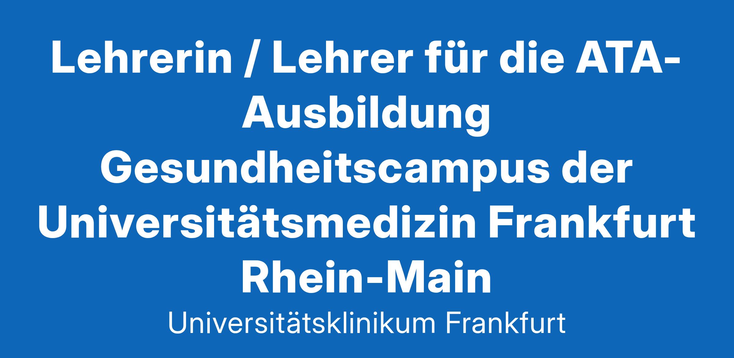 Lehrerin / Lehrer für die ATA-Ausbildung Gesundheitscampus der Universitätsmedizin Frankfurt Rhein-Main