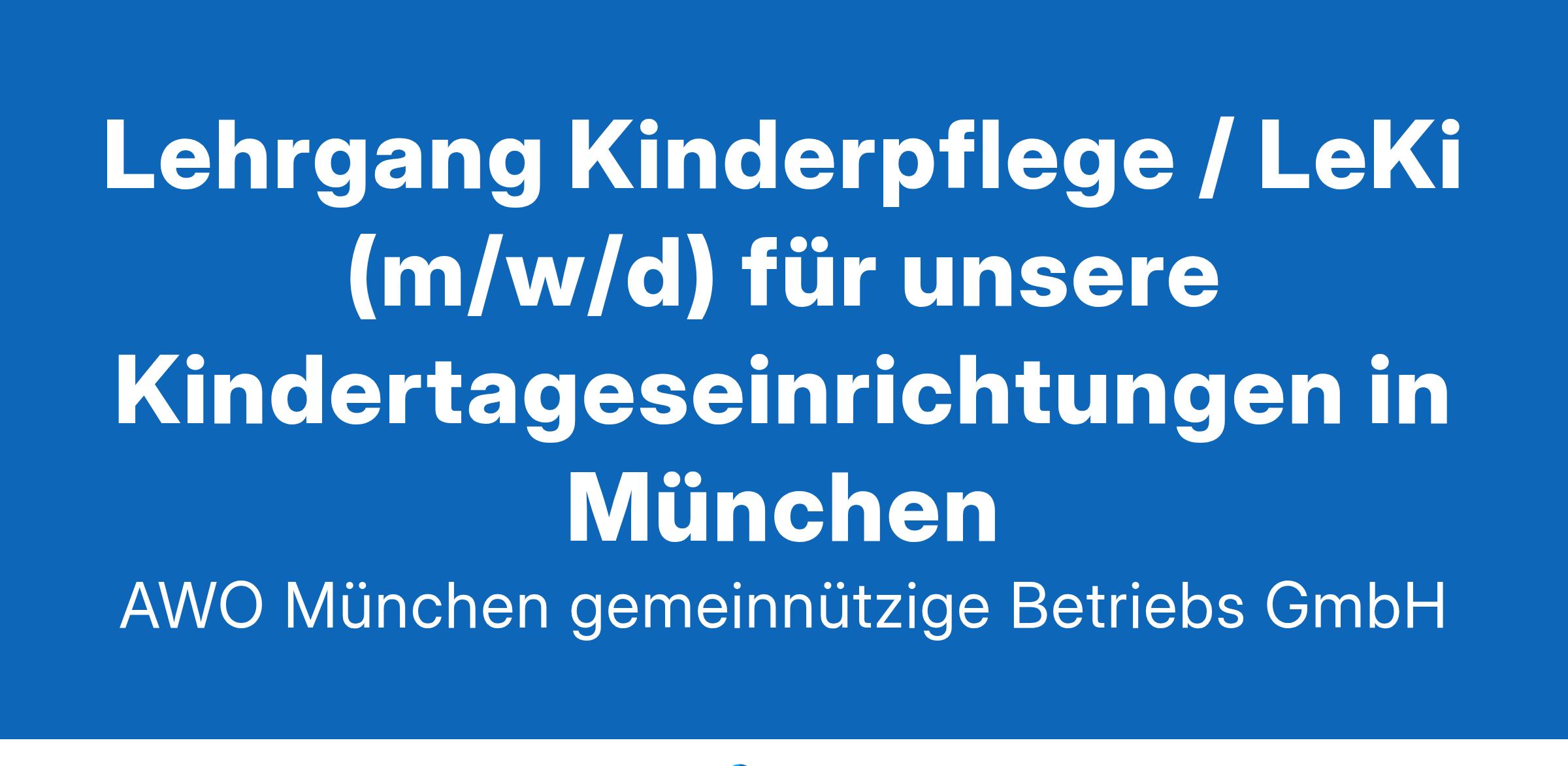 Die AWO München-Stadt ist in vielen Bereichen sozialer Arbeit in München aktiv. In der "Weltstadt mit Herz" trägt sie dazu bei, dass sich Familien, Jugendliche, Senior*innen, Migrant*innen und Menschen mit sozialen, beruflichen oder psychischen Problemen wohl fühlen und einen Platz in der Gesellschaft finden. Unsere wesentliche Zukunftsaufgabe ist die Festigung und der Ausbau der AWO als soziales Dienstleistungsunternehmen.Willst du an dieser Aufgabe mitarbeiten? Wir suchen dich als Lehrgang Kinderpflege / LeKi (m/w/d) für unsere Kindertageseinrichtungen in München Standort: Gravelottestraße 8, 81667 München