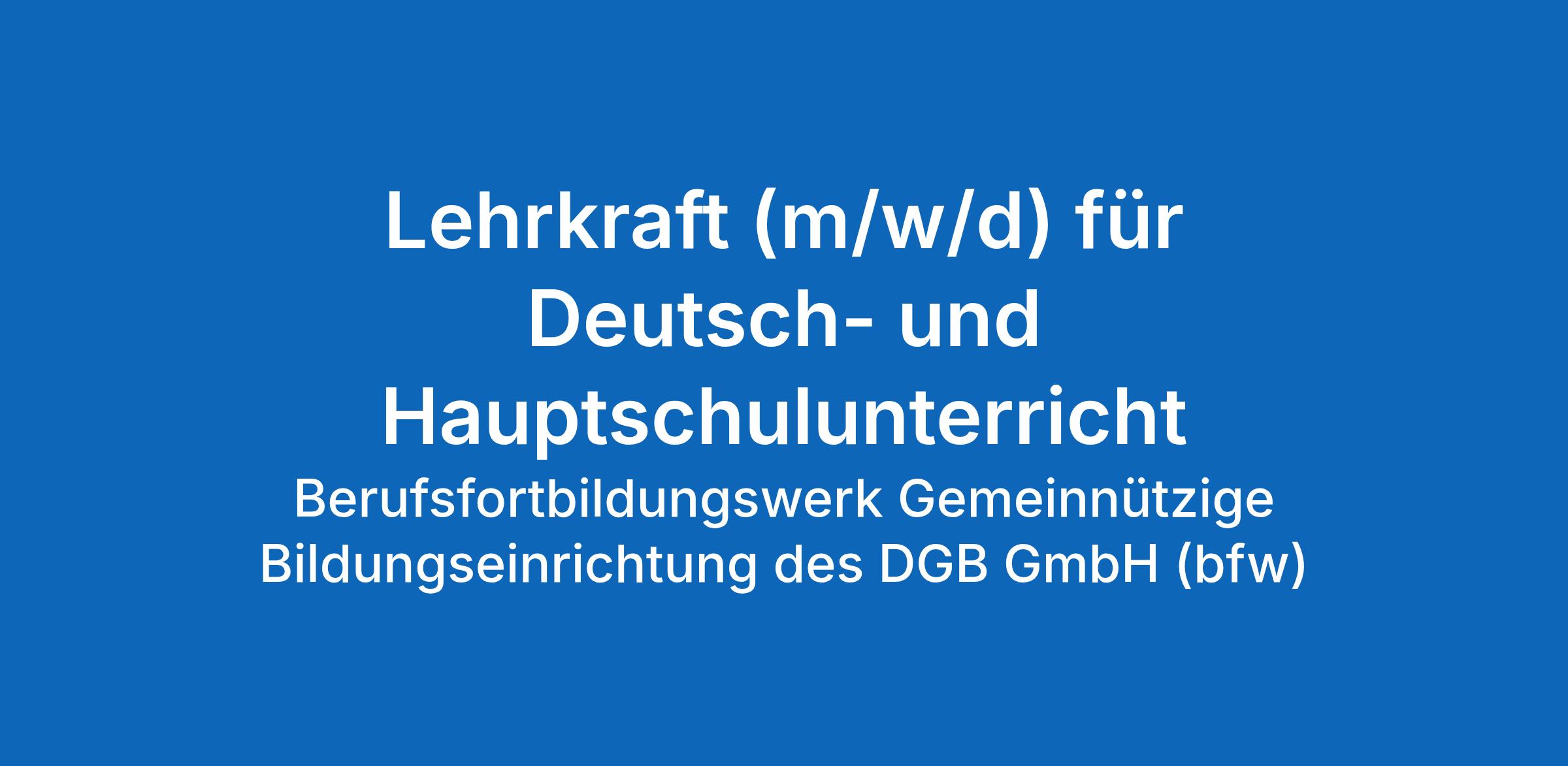 Lehrkraft (m/w/d) für Deutsch- und Hauptschulunterricht