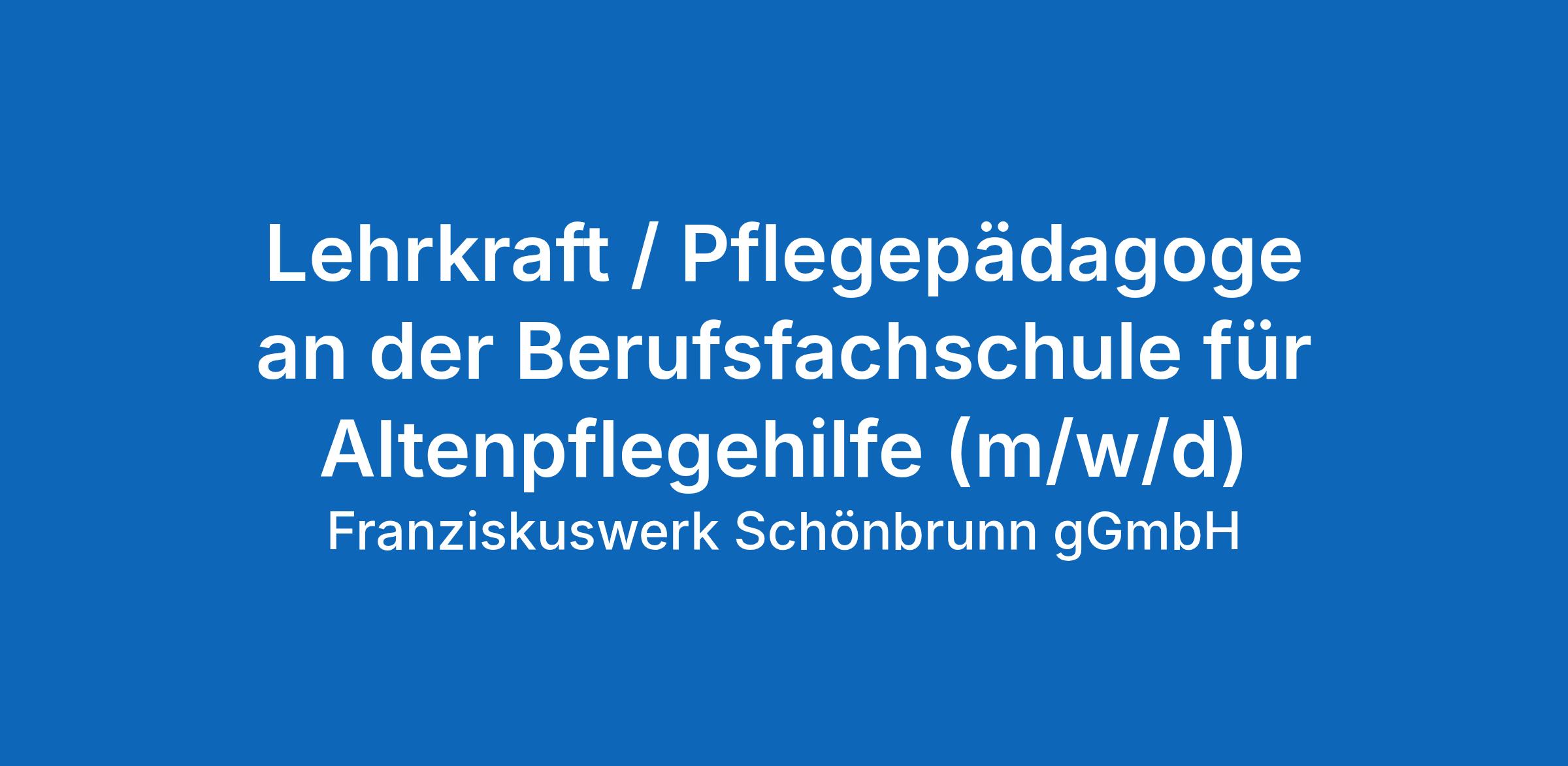 Lehrkraft / Pflegepädagoge an der Berufsfachschule für Altenpflegehilfe (m/w/d) 2026-000947