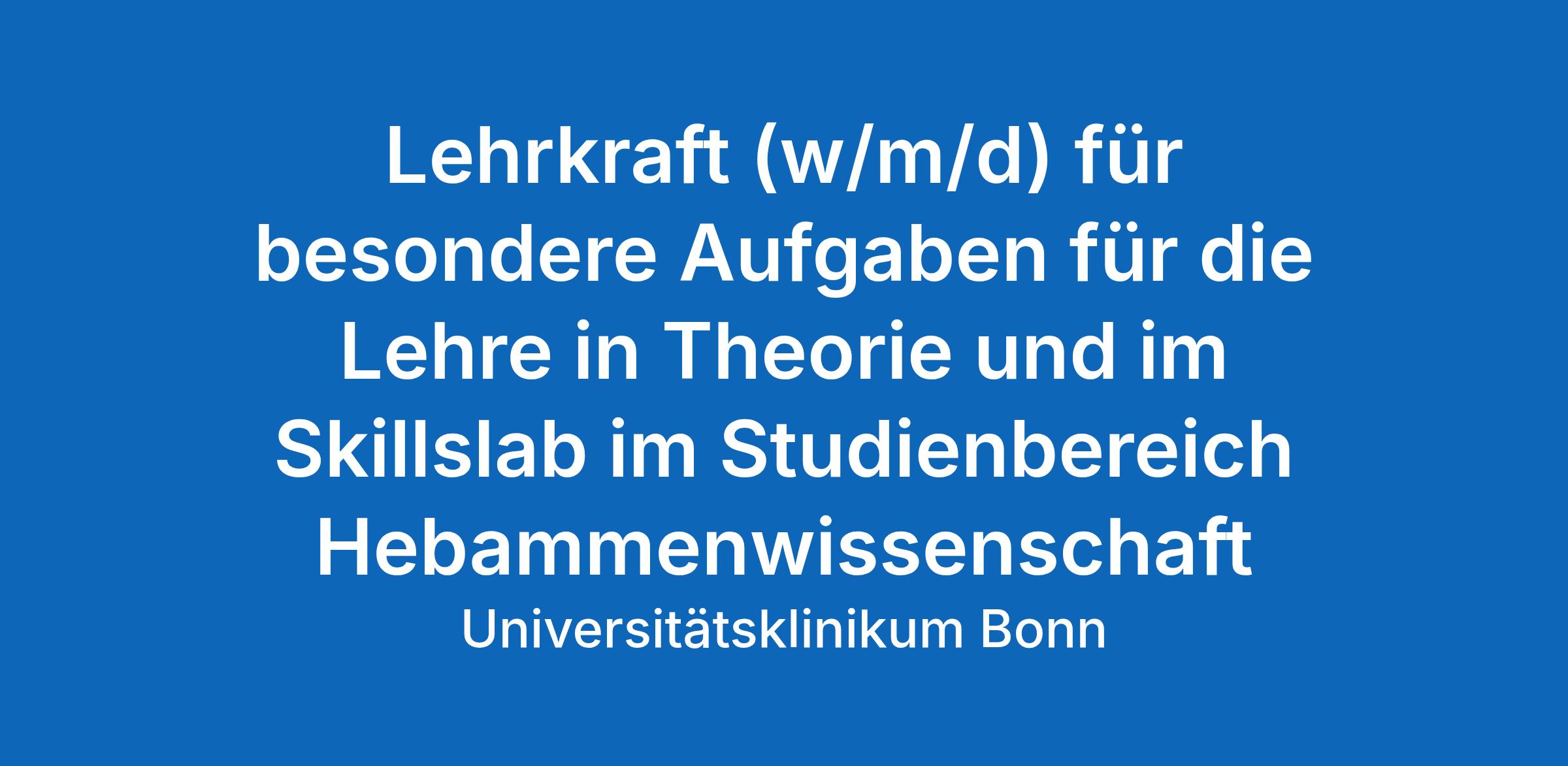 Am Institut für Hebammenwissenschaft der Medizinischen Fakultät der Rheinischen Friedrich-Wilhelms-Universität Bonn ist zum nächstmöglichen Zeitpunkt folgende Stelle in Teilzeit (19,25 Std./Woche (perspektivisch in Vollzeit (38,5Std./Woche) zu besetzen: