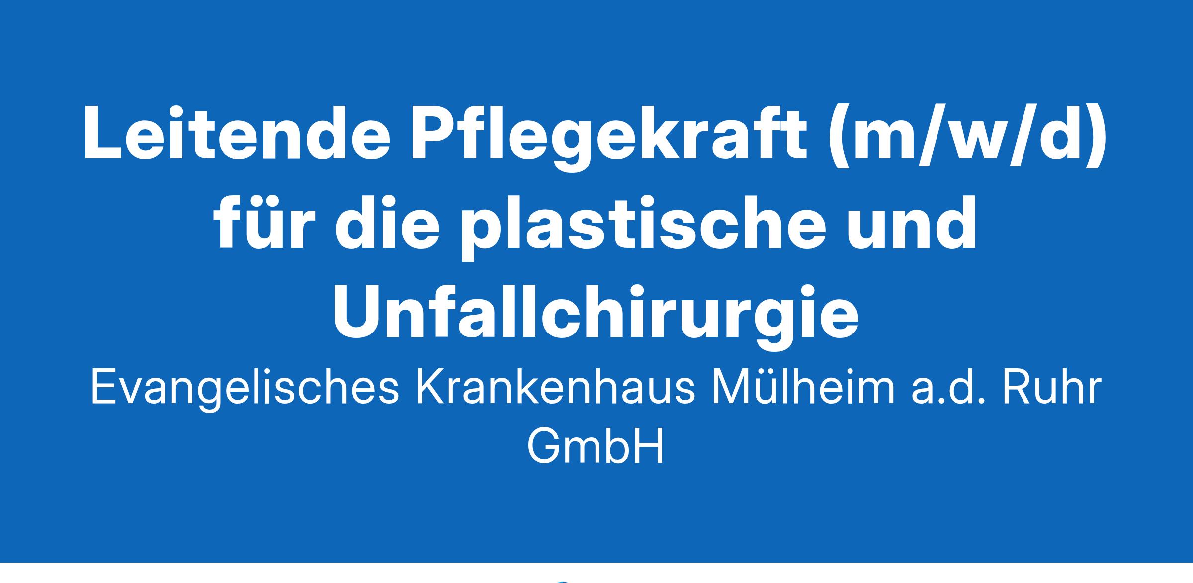 Karriere im Evangelischen Krankenhaus MülheimUnsere Klinik für die Plastische, Rekonstruktive und Ästhetische Chirurgie bietet das gesamte Spektrum der modernen Plastischen Chirurgie einschließlich der rekonstruktiven Mikrochirurgie, der Handchirurgie sowie der Ästhetischen Chirurgie an. In unserer Klinik für Orthopädie und Unfallchirurgie bilden wir den weiten Leistungsbereich der Orthopädie und Unfallchirurgie kompetent ab, leiten eine nicht-operative, sogenannte konservative Therapie ein oder bieten moderne Operationsverfahren an. Wir bieten unseren Mitarbeitenden ein professionelles und modernes Arbeitsumfeld. Ein angenehmes Arbeitsklima sowie ein guter Teamgeist sind für uns selbstverständlich. Die Kompetenz und die Motivation unserer Mitarbeitenden sind uns sehr wichtig: Daher unterstützen wir unsere Mitarbeitenden mit hochprofessionellen Fort- und Weiterbildungen in ihrer beruflichen und persönlichen Weiterentwicklung. In unseren Kliniken fühlen wir uns dem Menschen verpflichtet, unabhängig davon, ob es sich um Mitarbeitende, Patientinnen und Patienten oder um Angehörige handelt. Unser Miteinander gestalten wir auf Basis unserer gemeinsamen Werte. Das heißt unter anderem, dass wir jedem Menschen mit Respekt begegnen, in den offenen Austausch gehen und verlässlich in unseren Entscheidungen sind. Wir übernehmen Verantwortung gegenüber Anderen und gestalten gemeinsam nachhaltig unsere Zukunft. Zur Verstärkung unseres Pflegeteams und zur Unterstützung der Leitung auf der Station der Plastischen Chirurgie und Unfallchirurgie suchen wir zum nächstmöglichen Zeitpunkt eine erfahrene Pflegefachkraft (m/w/d) als stellv. Stationsleitung