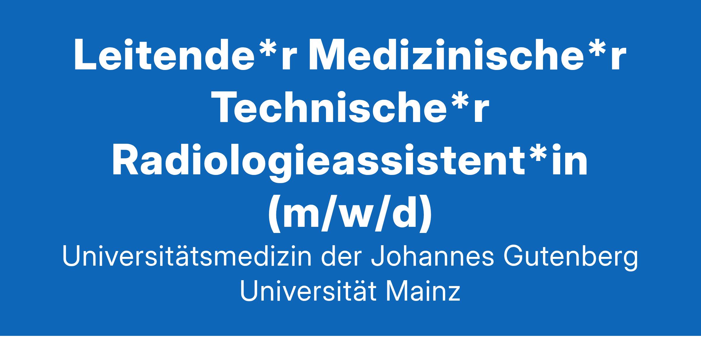 Sicherung und Weiterentwicklung der QualitätIhr Profil:Abgeschlossene Ausbildung als Medizinische*r Technische*r Radiologieassistent*in oder Medizinische*r Technologische*r Assistent*in (m/w/d)