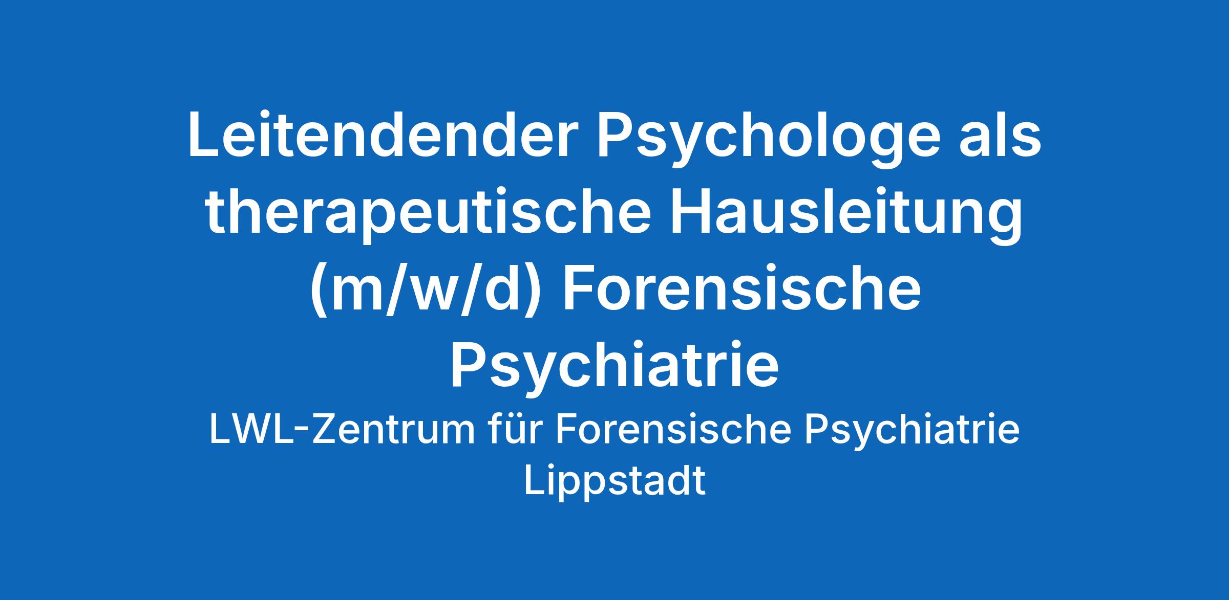 Das LWL-Zentrum für Forensische Psychiatrie Lippstadt ist eine der bundesweit größten Fachkliniken für Forensische Psychiatrie. Die Klinik verfügt über 335 stationäre Therapieplätze zur Behandlung psychisch kranker Rechtsbrecher:innen sowie über vielfältige Nachsorge- und Rehabilitationsangebote. Die Behandlungsabteilungen sind nach Störungsbildern und Therapiekonzepten binnendifferenziert und in Spezialstationen unterteilt. Darüber hinaus verfügt die Klinik über ein Weiterbildungsinstitut, das u. a. die jährliche Eickelborner Fachtagung sowie weitere Thementagungen organisiert. Im LWL-Zentrum für Forensische Psychiatrie Lippstadt suchen wir je eine therapeutische Hausleitung für die Psychosebehandlung (Haus 5) und für die Aufnahme/Diagnostik (Abteilung I, Haus 16 und Station 57.3)forms.stelle.zusatzinfo3
