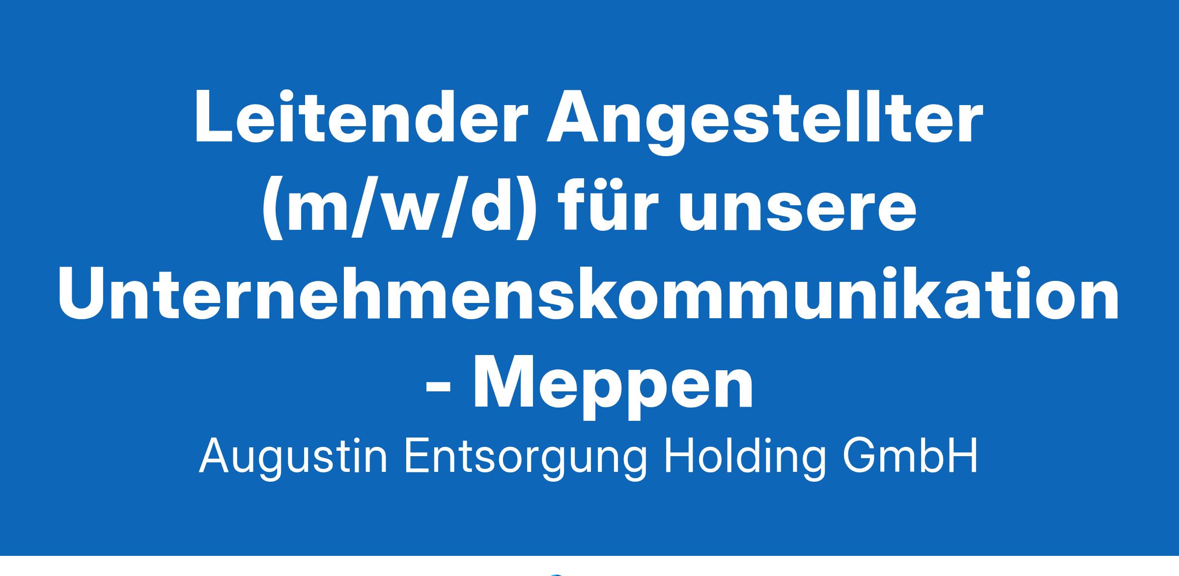Als Familienunternehmen mit über 750 Mitarbeitern an 11 Standorten sind wir seit 85 Jahren ein kompetenter Partner für Gewerbe, Industrie und Kommunen in Nord-West-Deutschland. Als zertifizierter Komplettdienstleister bieten wir maßgeschneiderte Entsorgungs- und Aufbereitungskonzepte an. Für unseren Standort in Meppen suchen wir zum nächstmöglichen Zeitpunkt einen leitenden Angestellten für unsere Unternehmenskommunikation (m/w/d)Ihre Aufgaben: Konzeptionelle Entwicklung und Durchführung von Kommunikationsplänen für die interne und externe Kommunikation Identifikation von Themenpotenzialen und PR-Chancen Erstellung und Management von Inhalten für unsere Social-Media-Kanäle und Webseite sowie Verfassen von Kunden- und Mitarbeiterbriefen im Rahmen der Unternehmens- und Kommunikationsstrategie Bearbeitung von Presse- und Öffentlichkeitsanfragen sowie Pflege der Medienkontakte Entwicklung neuer Kommunikationskonzepte, um die Arbeitergebermarke zu stärken Verantwortliche Organisation von Projekten mit Bezug zur Öffentlichkeitsarbeit Kommunikationssteuerung und enge Zusammenarbeit mit externen Dienstleistern Ihr Profil: Abgeschlossenes Studium im Bereich Marketing, Kommunikationsmanagement oder einem vergleichbaren Bereich Mehrjährige Berufserfahrung im Bereich Unternehmenskommunikation/HR-Marketing Kompetenzen im Bereich Projektmanagement und HR-Marketing Erfahrung mit der Adobe Creative Cloud sowie ein geschultes Auge für Typographie und Design Hervorragende Textkenntnisse, ein Gespür für spannendes Storytelling sowie die Fähigkeit, komplexe Sachverhalte verständlich und zielgruppengerecht darzustellen Offenes und empathisches Auftreten sowie Teamfähigkeit Wir bieten: Kreative Arbeitsatmosphäre und die Möglichkeit, sich in einem abwechslungsreichen Tätigkeitsfeld in einem innovativen und dynamischen Team weiterzuentwickeln Verlässlichkeit, Offenheit, Fairness und Respekt in der Zusammenarbeit Vollzeitstelle mit Arbeitsort in Meppen - Start ab sofort möglich Familiengeführtes Unternehmen mit flachen Entscheidungswegen Vielseitige Weiterbildungsmöglichkeiten Attraktives Einkommen und umfassende Sozialleistungen (Firmenfitness, Jobrad...) Eine sichere, dauerhafte und langfristige Perspektive KontaktHaben wir Ihr Interesse geweckt und möchten Sie zum Erfolg von Augustin Entsorgung beitragen? Sie erwartet eine anspruchsvolle, eigenverantwortliche und ausbaufähige Position in einem zukunftsorientierten Unternehmen. Werden Sie Teil unseres motivierten Teams. Wir freuen uns auf Ihre aussagekräftigen Bewerbungsunterlagen unter Angabe Ihres frühestmöglichen Starttermins und Ihrer Gehaltsvorstellung per E-Mail. Oder verwenden Sie unser unkompliziertes Online-Bewerbungsformular. Für Anlagen zur Online-Bewerbung, wie Zeugnisse oder Lebenslauf, bitte das PDF Format nutzen. Wir freuen uns auf Ihre Bewerbung! Ihre Ansprechpartnerin: Frau Birgit Budde Wir freuen uns auf Ihre Bewerbung! Bewerbungen per Post an folgende Adresse: Augustin Entsorgung Holding GmbH Dieselstr. 49 49716 Meppen Tel. 0151 53828-388 WWW.AUGUSTIN-ENTSORGUNG.DE Jetzt bewerben