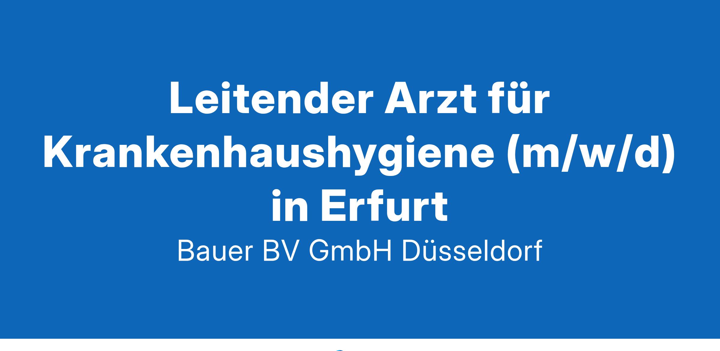 Anstellungsart(en): VollzeitIhr neuer Arbeitsplatz:Akutkrankenhaus der Schwerpunktversorgung im Raum Erfurt mit ca. 750 Betten. Die Abteilung für Krankenhaushygiene betreut alle Abteilungen des Hauses.Ihre Vorteile:Großer und abwechslungsreicher Tätigkeits- und AufgabenbereichEnge Anbindung an die ärztliche Klinikleitung mit allen Vorteilen (z- B. aktives Mentoring)Unterjährige MitarbeiterentwicklungsgesprächeUnterstützung für Fort- und WeiterbildungsmaßnahmenFamilienfreundlicher Arbeitgeber durch Kinderferienbetreuung, Teilzeitmöglichkeiten usw.Attraktive Vergütung inkl. betrieblicher AltersversorgungUnbefristete FestanstellungIhr Profil:Facharzt (m/w/d) idealerweise mit Zusatzqualifikation in der KrankenhaushygieneMehrjährige Berufserfahrung im Bereich KrankenhaushygieneGerne erste LeitungserfahrungenIhr Ansprechpartner:Bauer B+V Personalberatung