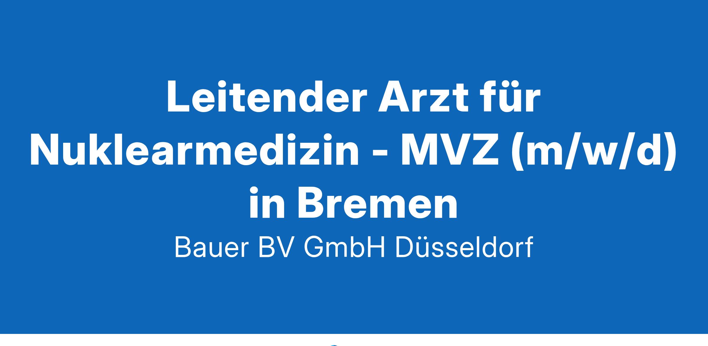 Anstellungsart(en): VollzeitIhr neuer Arbeitsplatz:Krankenhaus der Maximalversorung mit rund 750 Betten im Raum Bremen. Die Praxis für Nuklearmedizin im angeschlossenen MVZ betreut jährlich ca. 1.800 Patienten mit umfassender ambulanter Diagnostik und nuklearmedizinischen Untersuchungen.Ihre Vorteile:Interessante und abwechslungsreiche TätigkeitZukunftsorientierte Praxis -> neue Doppelkopfkamera usw.Großer GestaltungsspielraumStrukturierte EinarbeitungAufgeschlossenes TeamUmfangreiches Fort- und WeiterbildungsangebotVereinbarkeit von Familie und BerufVerlässliche Dienst- und UrlaubsplanungAttraktive, außertarifliche VergütungUnbefristete FestanstellungIhr Profil:Facharzt für Nuklearmedizin (m/w/d)Idealerweise Erfahrung in der SIRT-TherapieKommunikationsvermögen, Teamfähigkeit und OrganisationsgeschickInteresse an der Mitgestaltung moderner Arbeits- und PraxisabläufeIhr Ansprechpartner:Bauer B+V Personalberatung