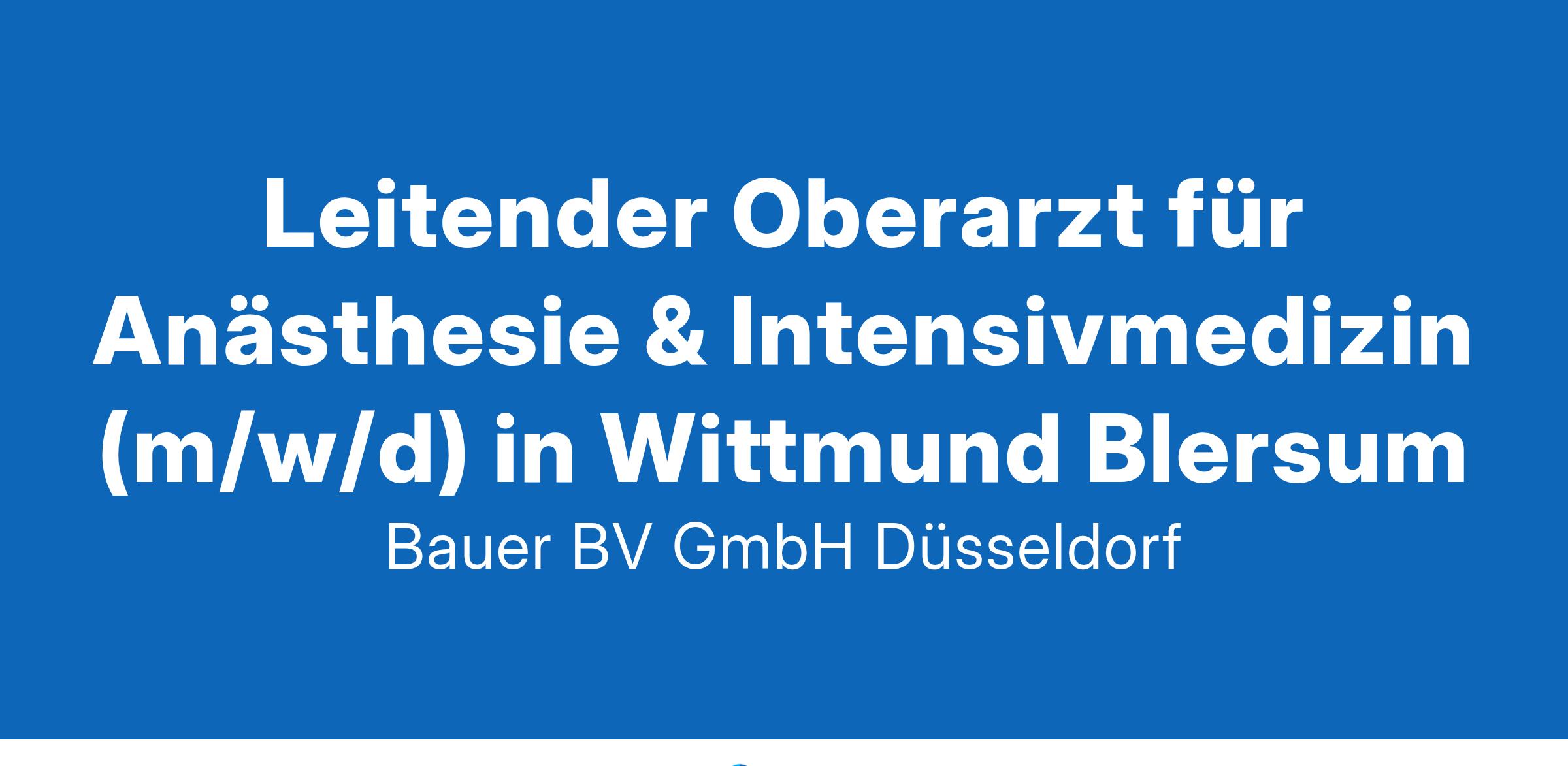 Anstellungsart(en): VollzeitIhr neuer Arbeitsplatz:Akademisches Lehrkrankenhaus und Krankenhaus der Schwerpunktversorgung mit rund 700 Betten im Raum Wittmund. Die Klinik für Anästhesie arbeitet in einem modernen OP-Bereich mit allen operativen Disziplinen des Krankenhauses zusammen. Die Schwerpunkte liegen im Bereich der Narkoseführung und schmerztherapeutischen Betreuung von Patienten, die sich am Klinikum einem operativen, interventionellen oder diagnostischen Eingriff unterziehen.Ihre Vorteile:Moderne Klinik mit entsprechender AusstattungPatientenversorgung auf hohem medizinischen NiveauFreundliches und engagiertes TeamUnterstützung und Förderung von WeiterbildungenAttraktive VergütungUnbefristete FestanstellungIhr Profil:Facharzt (m/w/d) für AnästhesieZusatzbezeichnungen IntensivmedizinHohe fachliche QualifikationLeitungserfahrungEngagement und TeamfähigkeitIhr Ansprechpartner:Bauer B+V Personalberatung