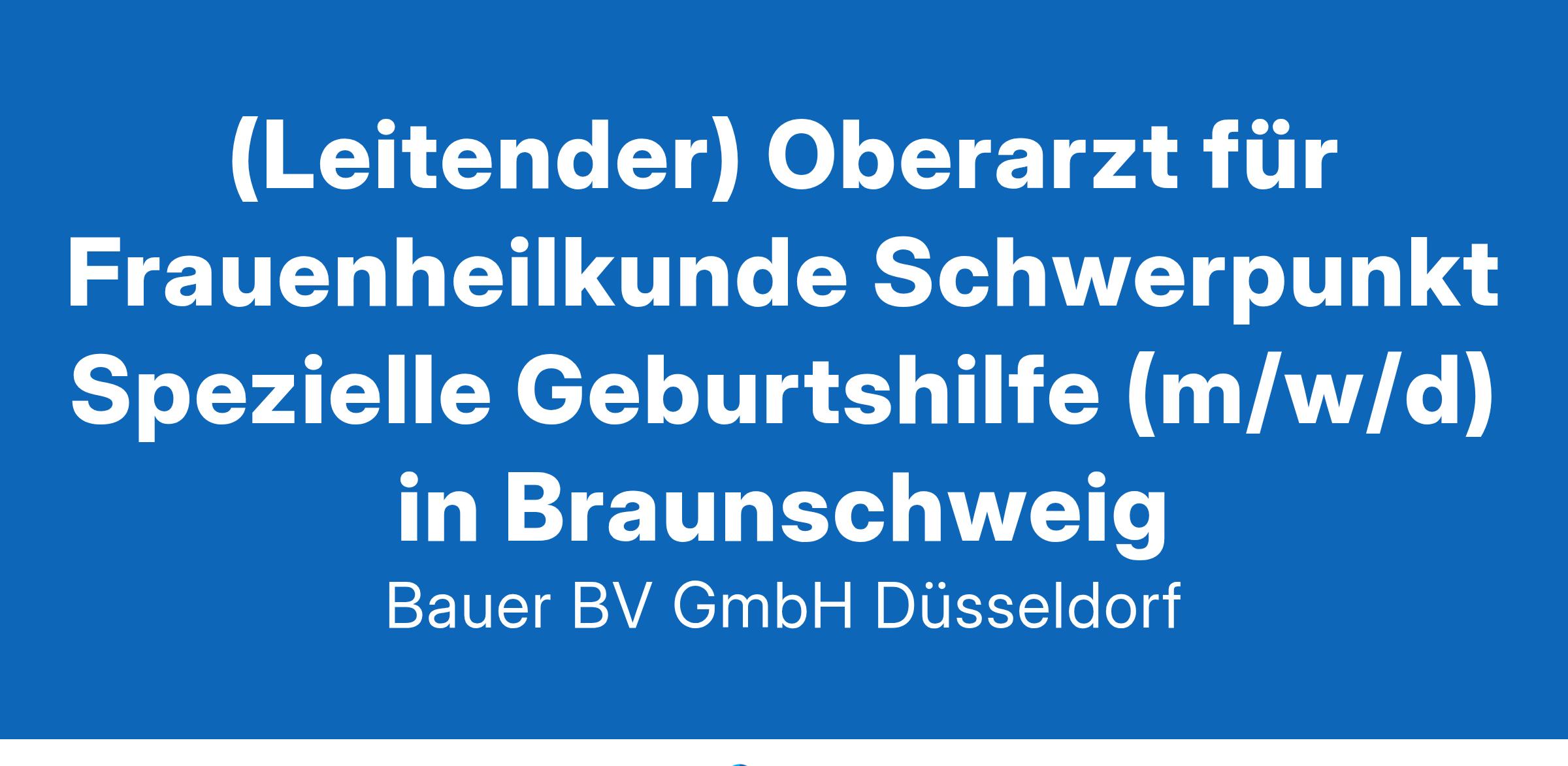 Anstellungsart(en): VollzeitIhr neuer Arbeitsplatz:Akademisches Lehrkrankenhaus mit knapp 600 Betten im Raum Braunschweig. Die Frauenklinik verfügt über rund 70 Betten mit den Schwerpunkte Spezielle Geburtshilfe und Perinatalmedizin, Gynäkologie sowie die Gynäkologische Onkologie. Die Klinik bietet spezialisierte Sprechstunden zur Pränataldiagnostik (DEGUM II), invasive und sonographische Abklärung, Begleitung von Risikoschwangerschaften. Jährlich werden ca. 2.200 Geburten betreut.Ihre Vorteile:Attraktiver ArbeitsplatzZertifiziertes gynäkologisches KrebszentrumZertifiziertes DysplasiezentrumZertifiziertes BrustzentrumPerinatalzentrum Level 1Anspruchsvolle AufgabenEmphatische und kompetente Durchführung ambulanter (Spezial-)SprechstundenWahrnehmung der ärztlichen KreißsaalleitungFreundliches und engagiertes TeamGroßzügige Unterstützung von Fort- und WeiterbildungenWeiterbildungsermächtigung für die Schwerpunkte Gynäkologische Onkologie und Spezielle Geburtshilfe und PerinatalmedizinAttraktive VergütungUnbefristete FestanstellungIhr Profil:Facharzt (m/w/d) für Frauenheilkunde und GeburtshilfeSchwerpunktkompetenz Spezielle Geburtshilfe und PerinatalmedizinGerne DEGUM II ZertifizierungEngagement und TeamfähigkeitIhr Ansprechpartner:Bauer B+V Personalberatung