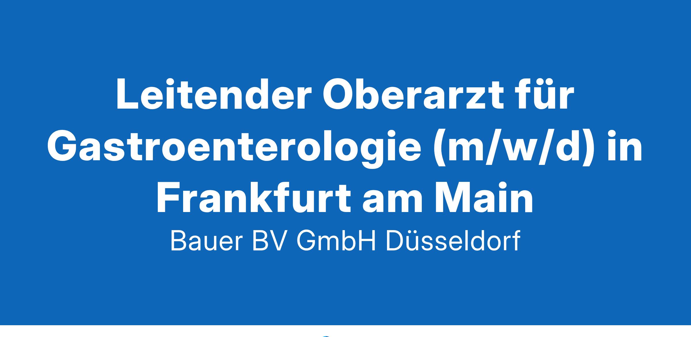 Anstellungsart(en): VollzeitIhr neuer Arbeitsplatz:Krankenhaus mit knapp 200 Betten in der Region Frankfurt am Main. Die Klinik für Gastroenterologie betreut das gesamte Spektrum des Fachbereiches. Die Abteilung bietet ein breites Spektrum operativer und nicht-operativer Behandlungen.Ihre Vorteile:Moderne Klinik mit breitem AufgabengebietUnterstützung der fachlichen und organisatorischen Leitung des Bereichs GastroenterologieSicherstellung der stationären endoskopischen VersorgungVertrauensvolle und interdisziplinäre ZusammenarbeitUnterstützung von Fort- und WeiterbildungUnbefristete Anstellung in VollzeitAttraktive VergütungIhr Profil:Facharzt für Innere Medizin und Gastroenterologie (m/w/d)Breites gastroenterologisches ErfahrungsspektrumGute Kenntnisse in Ultraschall sowie der diagnostischen und interventionellen EndoskopieIhr Ansprechpartner:Bauer B+V Personalberatung