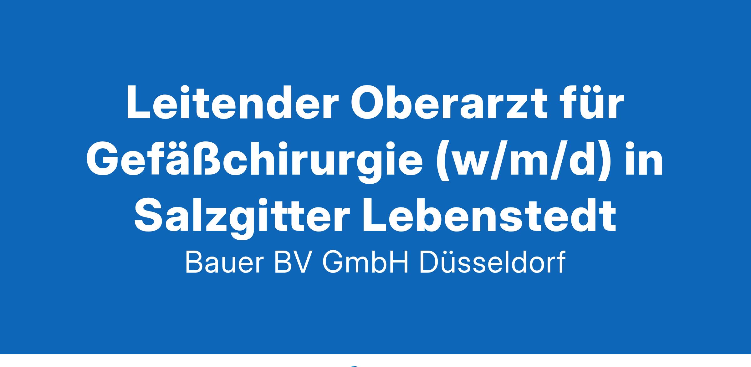 Anstellungsart(en): VollzeitIhr neuer Arbeitsplatz:Akademisches Lehrkrankenhaus mit rund 300 Betten im Raum Salzgitter. Die Klinik für operative und endovaskuläre Gefäßchirurgie behandelt jährlich ca. 1.400 Patienten mit Erkrankungen des arteriellen und venösen Gefäßsystems und verfpgt dazu über 37 Betten . Die Schwerpunkte liegen in der Carotischirurgie, der Aortenchirurgie und in cruralen/pedalen Bypassrekonstruktionen.Ihre Vorteile:Abwechslungsreiche, anspruchs- und verantwortungsvolle TätigkeitHohes Gestaltungspotential und viel EntscheidungsfreiraumEntlastung des ärztlichen Dienstes durch FachkräfteMotiviertes Team mit flachen HierarchienAttraktive Vergütung inkl. betriebliche AltersversorgungUnbefristete Anstellung mit PerspektiveIhr Profil:Facharzt für Gefäßchirurgie (m/w/d)Erfahrungen in oberärztlicher PsotionFundierte Kenntnisse im FachbereichMotivation, Teamgeist und EngagementIhr Ansprechpartner:Bauer B+V Personalberatung