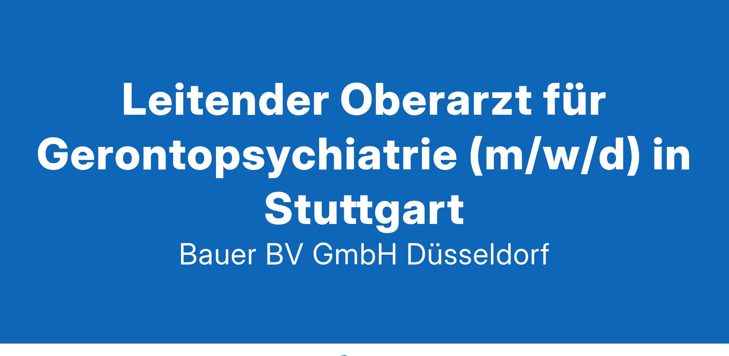 Anstellungsart(en): VollzeitIhr neuer Arbeitsplatz:Akademisches Lehrkrankenhaus und Akutkrankenhaus im Raum Stuttgart mit rund 600 Betten und Tagesplätzen. Den Patienten wird sektorübergreifend eine hochwertige Diagnostik und Behandlung zuteil.Ihre Vorteile:Moderne, spezialisierte KlinikAbwechslungsreiche und verantwortungsvolle TätigkeitVertretung des ChefarztesEigenständige Leitung der gerontopsychiatrischen AkutstationFühren der Oberärzte der Klinik für Gerontopsychiatrie und -psychotherapieMitarbeiterweiterentwicklungWeiterentwicklung der VersorgungsstrukturMöglichkeit zur LehrtätigkeitFreundliches und engagiertes TeamFort- und WeiterbildungsmöglichkeitenWeiterbildungsmöglichkeit zur Zusatzbezeichnung „Geriatrie“Teilnahme an wissenschaftlichen Projekten und PromotionAttraktive Vergütung inkl. betrieblicher AltersversorgungUnbefristete FestanstellungIhr Profil:Facharzt für Psychiatrie und Psychotherapie (m/w/d)Kenntnisse im Bereich gerontopsychiatrischer ErkrankungenErfahrungen bei neurologischen, geriatrischen und somatischen KrankheitsbildernFührungserfahrungEngagement und soziale KompetenzIhr Ansprechpartner:Bauer B+V Personalberatung