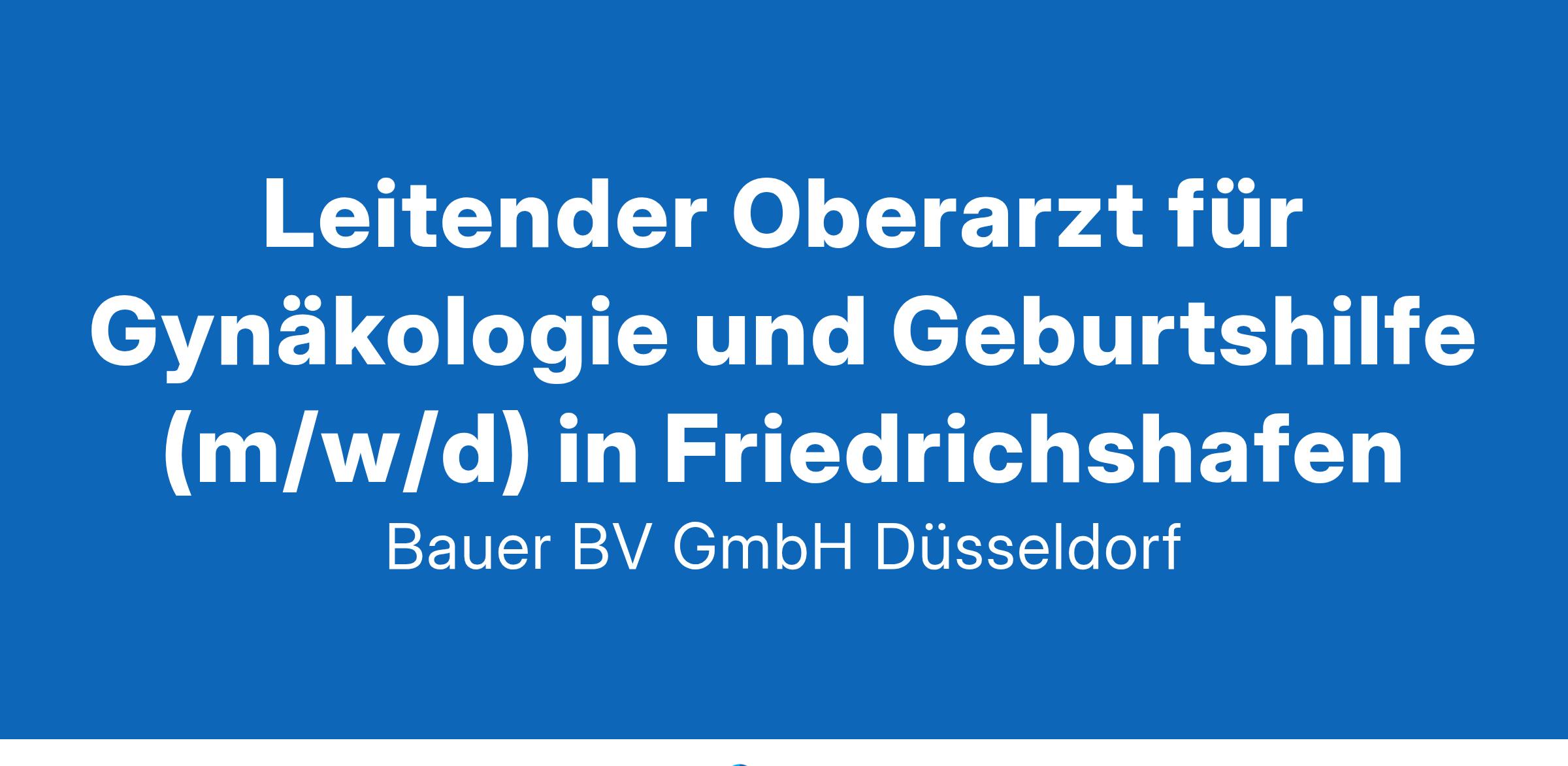 Anstellungsart(en): VollzeitIhr neuer Arbeitsplatz:Akutkrankenhaus mit rund 150 Betten im Raum Friedrichshafen am Bodensee. Die Abteilung Gynäkologie und Geburtshilfe verfügt über 20 Betten zzgl. einem variablen Bettenanteil auf der Privatstation. Es kommen etwa 600 Kinder pro Jahr zur Welt. In der Abteilung werden Jährlich ca. 700 operative Eingriffe in den Bereichen Beckenbodenchirurgie, gynäkologische Operationen sowie Onkologie durchgeführt. Der Schwerpunkt liegt in der Endoskopie.Ihre Vorteile:Abwechslungsreiches, vielseitiges und anspruchsvolles AufgabengebietFührung und Leitung der AbteilungBetreuung der GeburtshilfeBehandlung und Diagnostik gynäkologischer ErkrankungenModerne Klinik mit breitem fachlichen SpektrumFreundliches und engagiertes TeamExzellente interdisziplinäre ZusammenarbeitAttraktive VergütungUnbefristete Festanstellung mit PerspektiveIhr Profil:Facharzt (m/w/d) für Gynäkologie und GeburtshilfeMehrjährige BerufserfahrungFachkunde im StrahlenschutzEngagement und TeamfähigkeitIhr Ansprechpartner:Bauer B+V Personalberatung