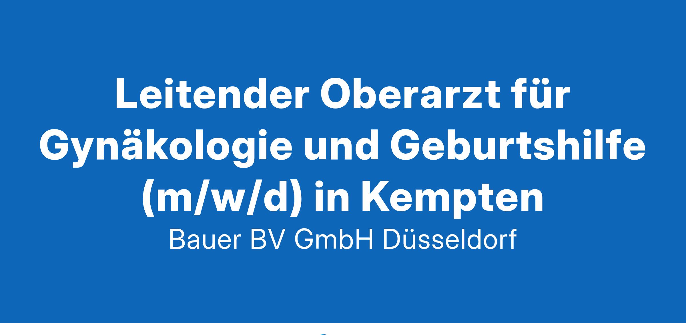 Anstellungsart(en): VollzeitIhr neuer Arbeitsplatz:Akademisches Lehrkrankenhaus mit 400 Betten im Raum Kempten (Allgäu). Die Frauenklinik betreut mit ihrem perinatalen Schwerpunkt jährlich knapp 1.000 Geburten mit großem Anteil an Risikoschwangeschaften. Das gynäkologische Spektrum der Klinik umfasst die Senologie, die gynäkologische Onkologie und ein Beckenbodenzentrum sowie ausgedehnten MIC-Operationen.Ihre Vorteile:Abwechslungsreiches, vielseitiges und anspruchsvolles AufgabengebietModerne Klinik mit breitem fachlichen SpektrumFreundliches und engagiertes TeamExzellente interdisziplinäre ZusammenarbeitAttraktive VergütungUnbefristete Festanstellung mit PerspektiveIhr Profil:Facharzt (m/w/d) für Gynäkologie und GeburtshilfeLangjährige Fach- und FührungserfahrungGerne Zusatzbezeichnung „Gynäkologische Onkologie“Engagement und TeamfähigkeitIhr Ansprechpartner:Bauer B+V Personalberatung