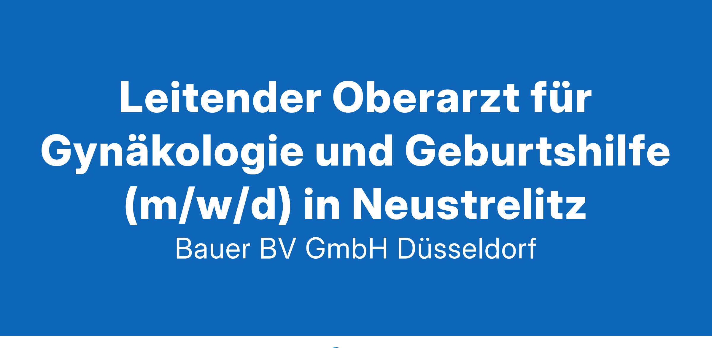 Anstellungsart(en): VollzeitIhr neuer Arbeitsplatz:Akademisches Lehrkrankenhaus mit ca. 900 Betten im Raum Neustrelitz. Die Klinik für Gynäkologie und Geburtshilfe behandelt das gesamte Spektrum des Fachbereiches, die Fachabteilung der Onkologischen Gynäkologie allen gängigen gynäkologischen Tumorerkrankungen.Ihre Vorteile:Abwechslungsreiches und vielseitiges AufgabengebietChemotherapie bei gynäkologischen KarzinomenNachsorge und Betreuung von KrebspatientinnenKollegiales, stabiles und motiviertes TeamTeilnahme an internen und externen FortbildungsveranstaltungenAttraktive VergütungUnbefristete Festanstellung mit PerspektiveIhr Profil:Facharzt (m/w/d) für Gynäkologie und GeburtshilfeSchwerpunktbezeichnung Gynäkologische OnkologieMehrjährige Fach- und FührungserfahrungEngagement und TeamfähigkeitIhr Ansprechpartner:Bauer B+V Personalberatung