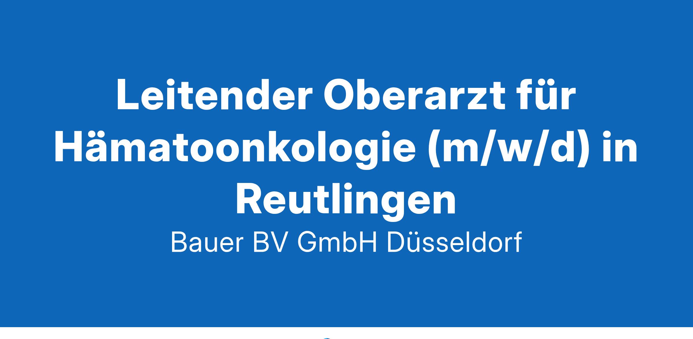 Anstellungsart(en): VollzeitIhr neuer Arbeitsplatz:Akademisches Lehrkrankenhaus mit rund 400 Betten im Raum Reutlingen. Im zertifizierten Onkologischen Zentrum sind Brustzentrum, Darmzentrum sowie Prostatazentrum vereint. Die Klinik bietet eine umfassende Betreuung im Bereich Hämatologie / Onkologie, der onkologische Schwerpunkt ist anerkannt.Ihre Vorteile:Attraktiver uns abwechslungsreicher ArbeitsplatzVersorgung der Patienten in dem bestehenden stationären und ambulanten BehandlungskonzeptUnterstützung des ChefarztesMitarbeit im interdisziplinären TeamDurchführung von sonographischen und zytologischen DiagnostikverfahrenTeilnahme an den Tumorkonferenzen der zertifizierten und kooperierenden ZentrenMitarbeit an klinischen StudienKompetentes TeamUnterstützung von Fort- und WeiterbildungenAttraktive VergütungUnbefristete Festanstellung mit PerspektiveIhr Profil:Facharzt (m/w/d) für Hämatologie und OnkologieFundierte Kenntnisse im FachgebietErste FührungserfahrungenEngagement und TeamfähigkeitIhr Ansprechpartner:Bauer B+V Personalberatung