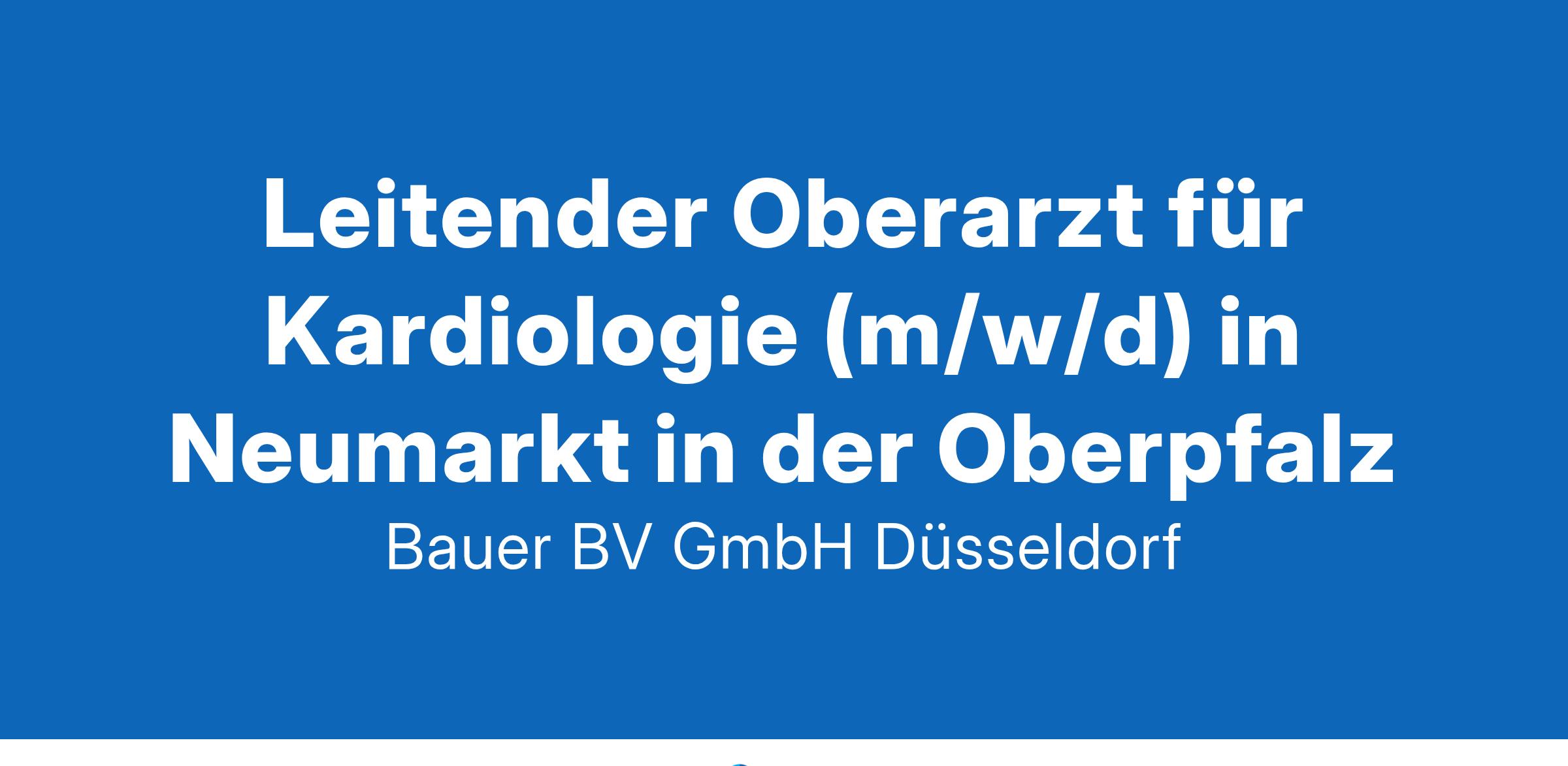 Leitender Oberarzt für Kardiologie (m/w/d)Stellen-ID: 2750 Standort: Neumarkt in der Oberpfalz Anstellungsart(en): VollzeitIhr neuer Arbeitsplatz:Akademisches Lehrkrankenhaus mit rund 200 Betten im Raum Neumarkt in der Oberpfalz. Die Fachabteilung für Kardiologie behandelt jährlich ca. 2.600 Patienten stationär und verfügt über 42 Planbetten inkl. 7 Betten auf der interdisziplinären Intensivstation. Im hochmodernen Herzkatheterlabor werden Linksherz- und Rechtsherzkatheteruntersuchung durchgeführt. Ein weiterer Schwerpunkt liegt auf elektrophysiologischen Untersuchungen.Ihre Vorteile:Mitgestaltung beim Ausbau der KardiologieVielfältige Fort- und WeiterbildungsmöglichkeitenAttraktive Vergütung mit betrieblicher AltersversorgungLeistungsbezogene Beteiligung an den Liquidationserlösen der AbteilungUnterstützung bei der Wohnraumbeschaffung und UmzugskostenUnbefristete AnstellungIhr Profil:Fachärztin/-arzt für Innere Medizin mit Zusatzbezeichnung KardiologieGerne Zusatzbezeichnung „Invasive Elektrophysiologie“ oder „Spezielle Rhythmologie“Hohe fachliche Qualifikation und umfangreiche klinische Erfahrung inkonventioneller und invasiver Diagnostik und in deninterventionellen Therapieverfahren einschl. ElektrophysiologieIhr Ansprechpartner:Bauer B+V Personalberatung Frau Lena Schwarz Grafenberger Allee Jetzt bewerbenDüsseldorfT.: 0211 - Jetzt bewerbenE.: Jetzt bewerben